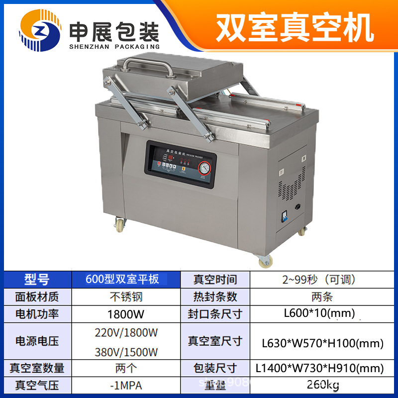 이중실 진공포장기 600형 상업용 소시지 및 베이컨 자동포장기 이중실 장비 완전 자동스토어 가기