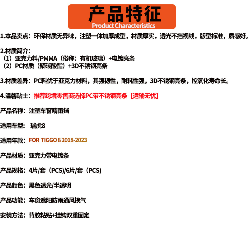 Chery Ruihu 8 비 방패 창 비 방패 TIGGO 8 2018-2023 창 바이저에 적합스토어 가기