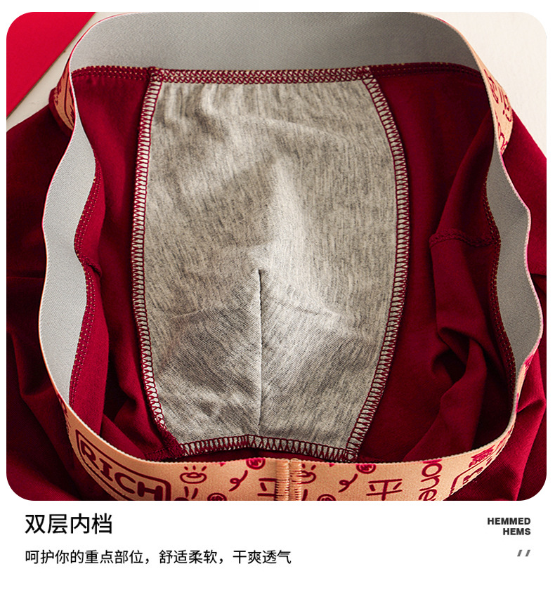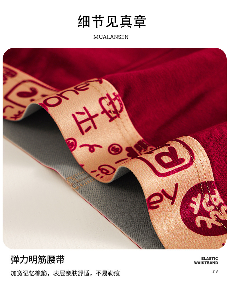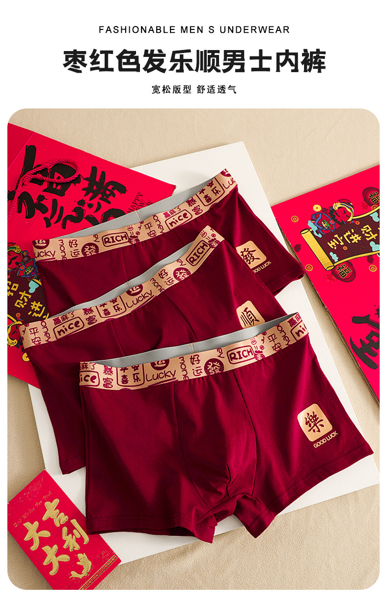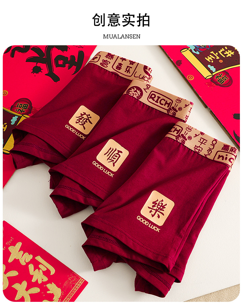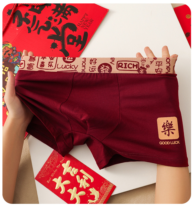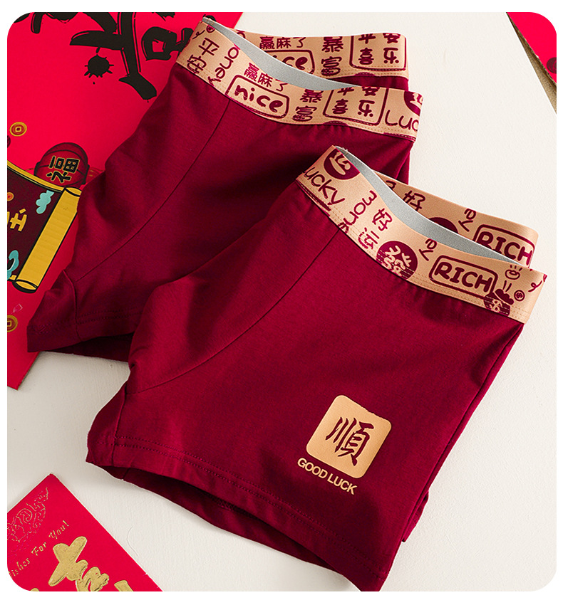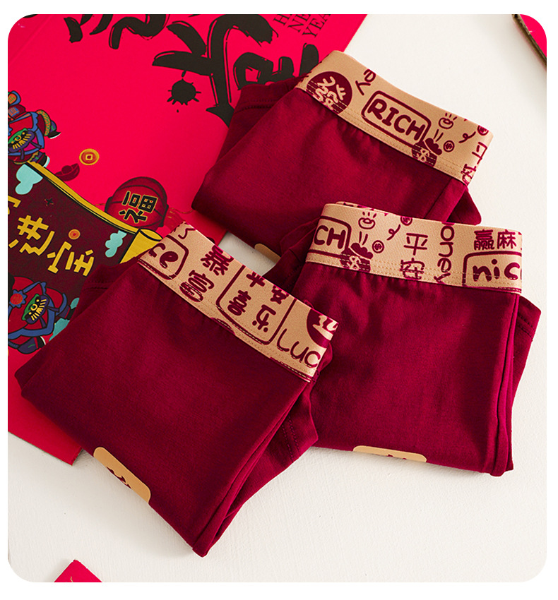 새해 빨간 남자의 순면 속옷 편안한 4 개 코너 가을과 겨울 소년의 유행 복서 짧은 바지