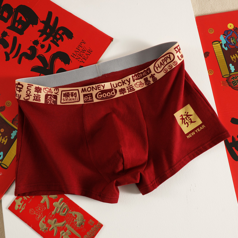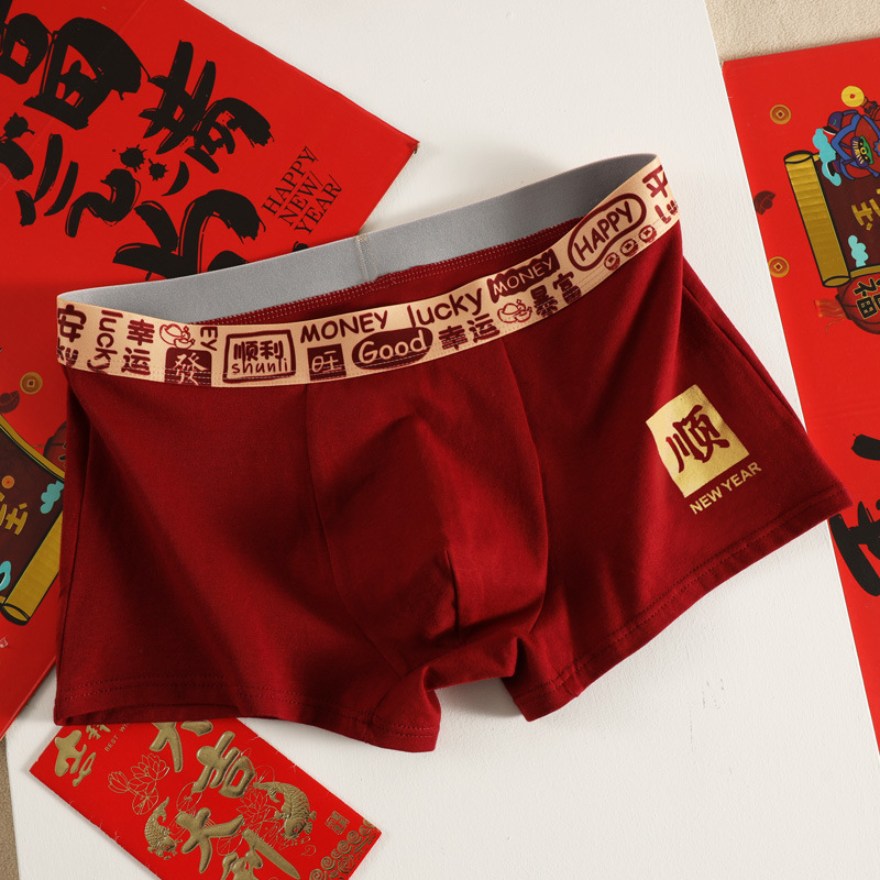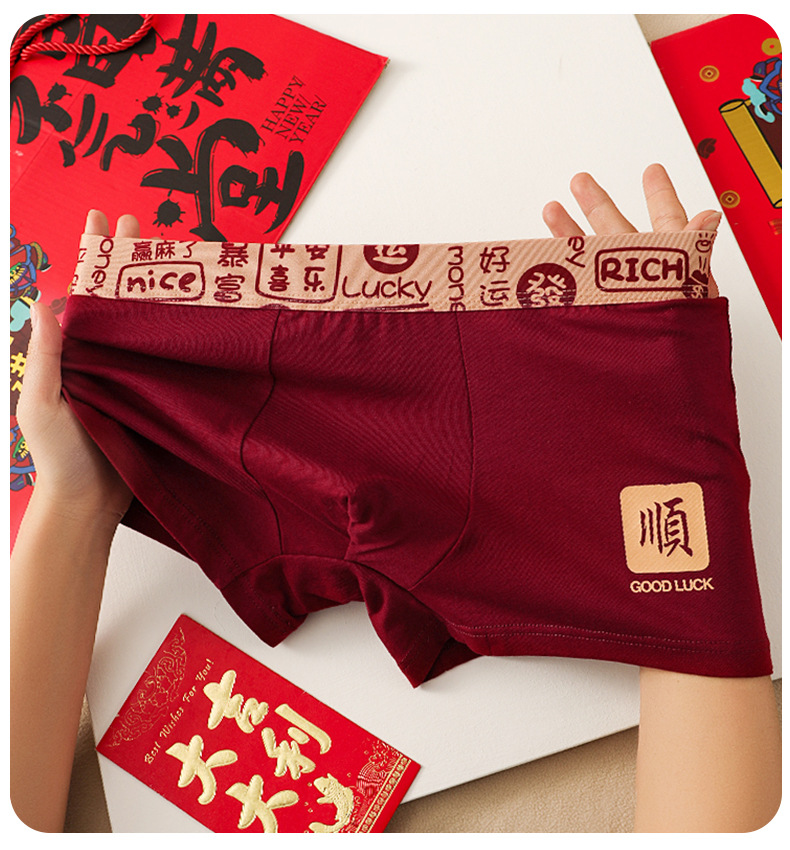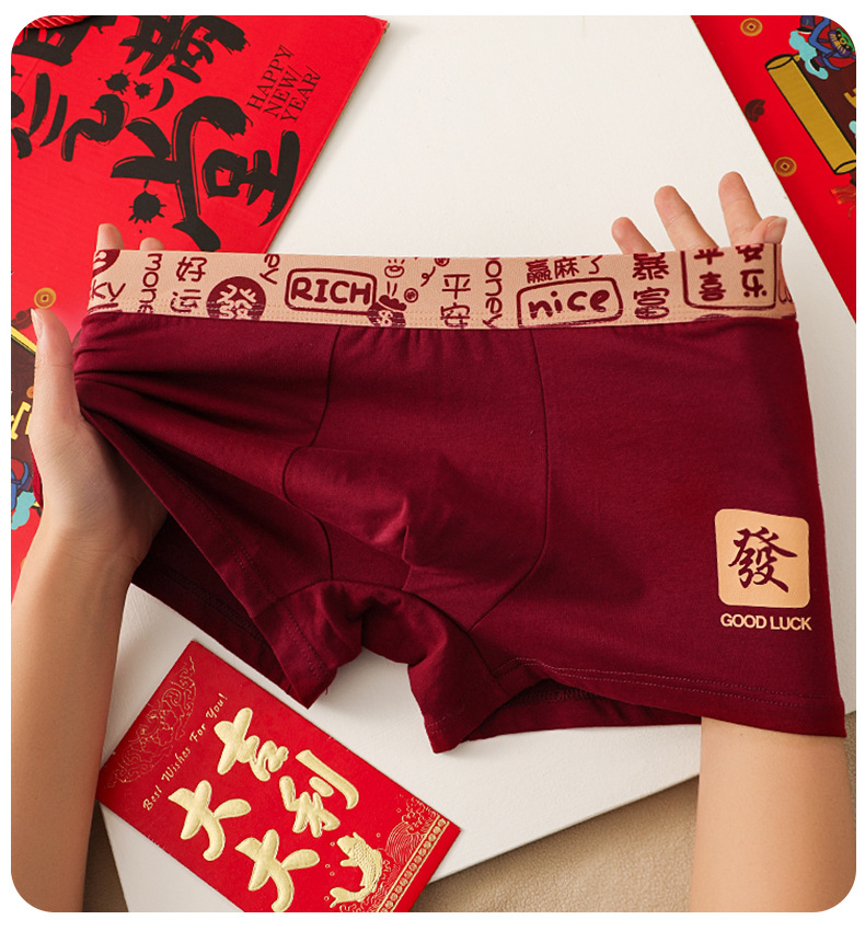 새해 빨간 남자의 순면 속옷 편안한 4 개 코너 가을과 겨울 소년의 유행 복서 짧은 바지스토어 가기