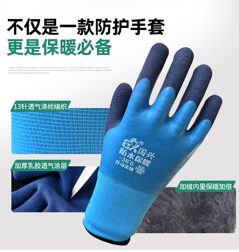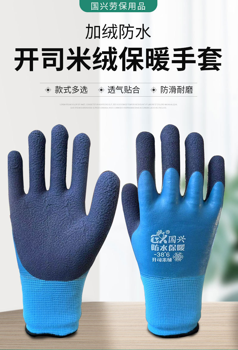 캐시미어 라텍스 발포 노동 보호 장갑 건설 현장 작업을위한 두꺼운 따뜻한 감기 방수 프로스트 장갑