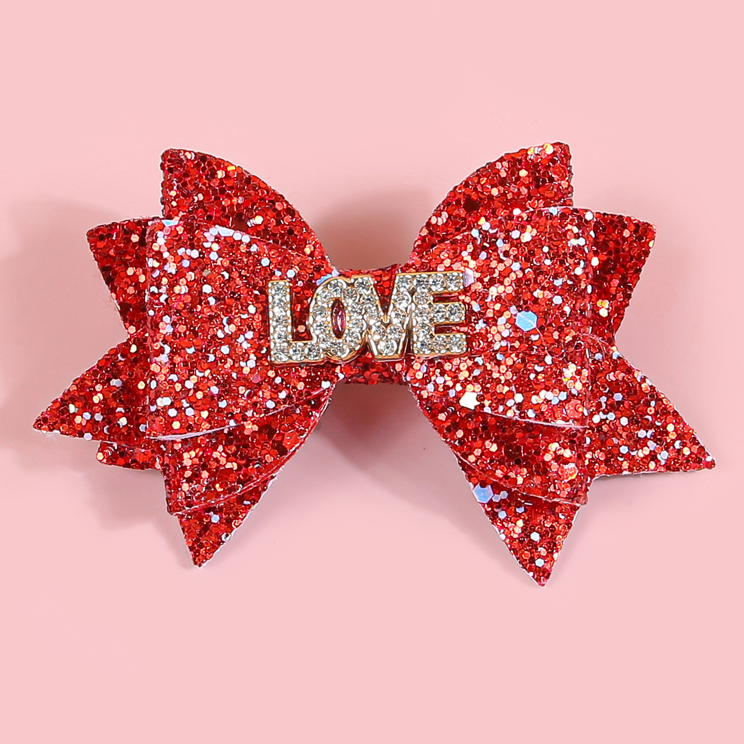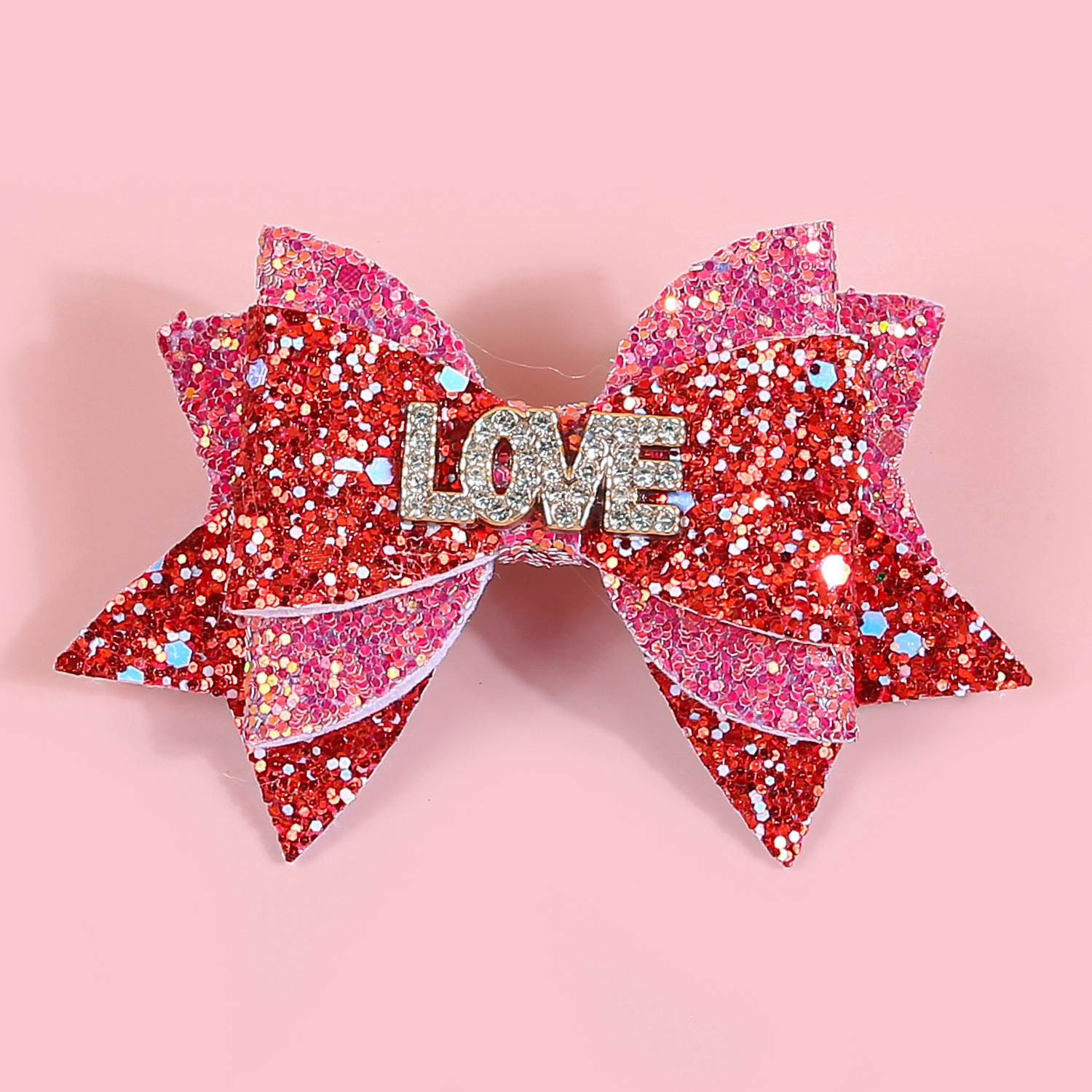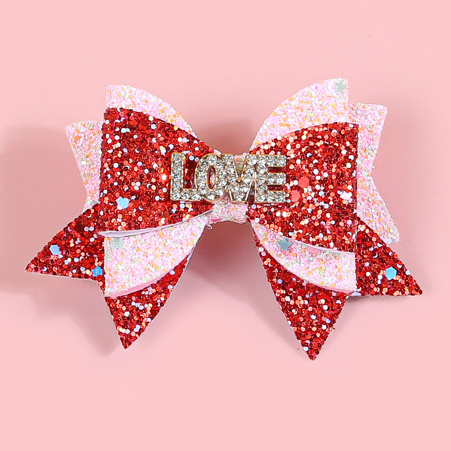 【名称】新款跨境情人节派对蝴蝶结发夹儿童葱粉格利特蝴蝶结发夹发饰