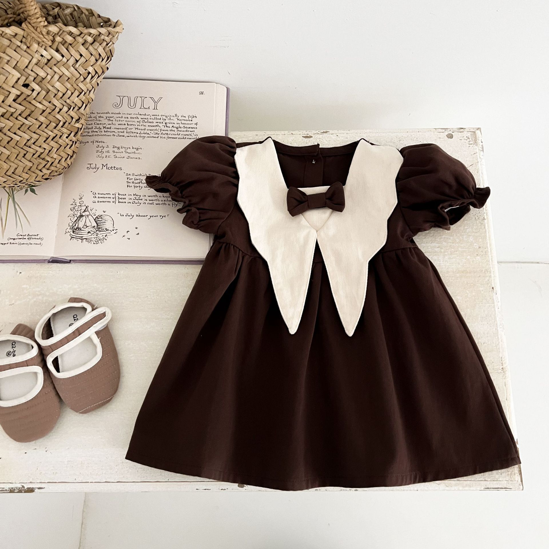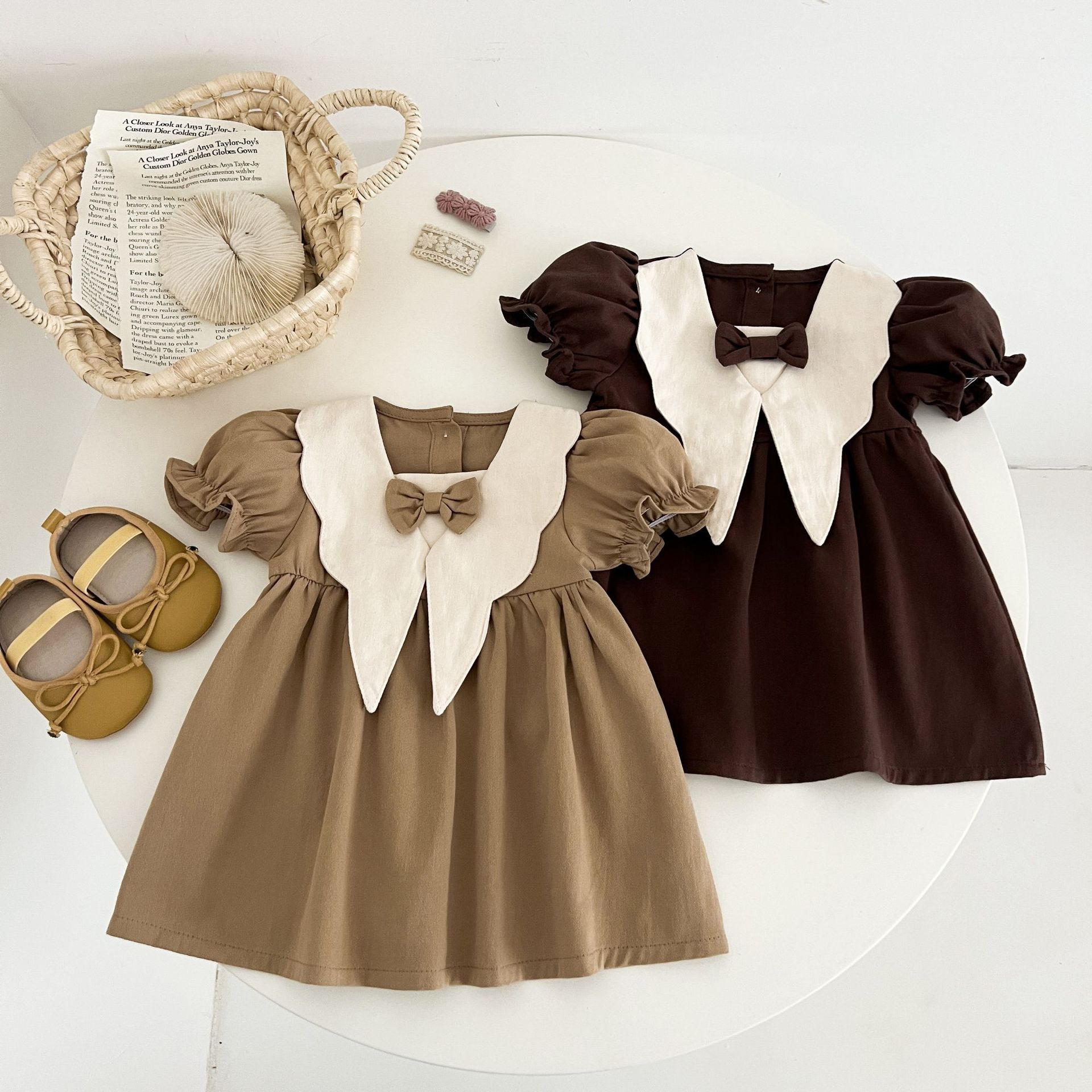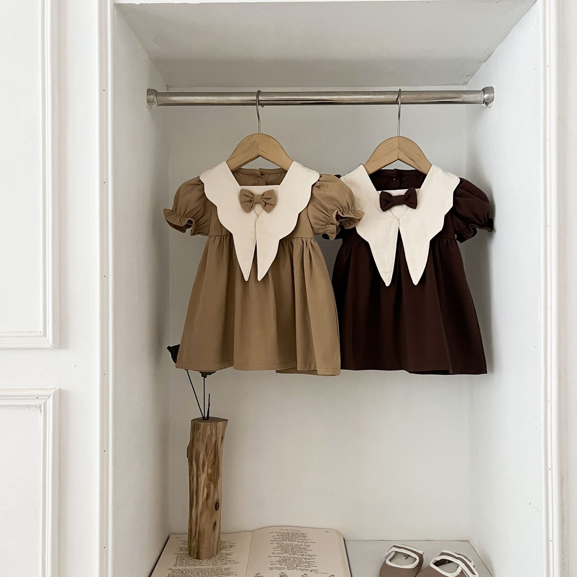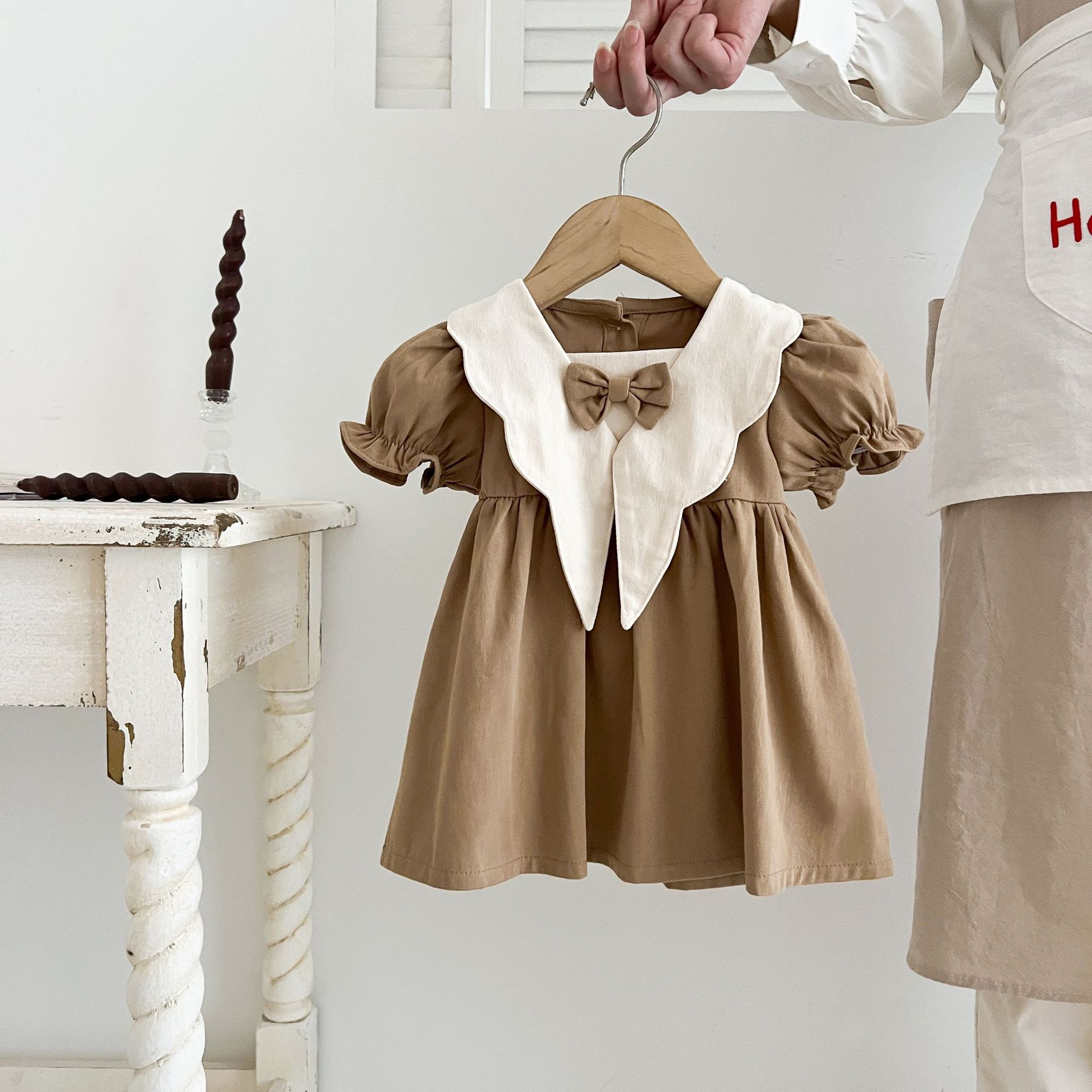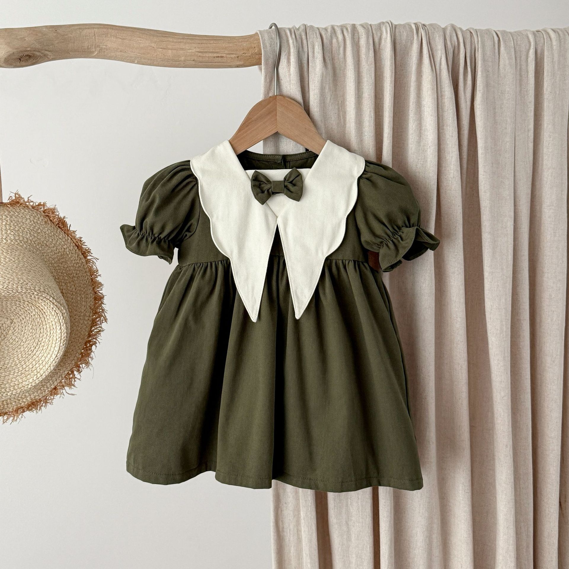여자 여름 원피스 아카데미 스타일 원피스 어린이 여름 서양식 원피스 여성 아기 인형 칼라 짧은 소매 빈티지 공주 원피스스토어 가기