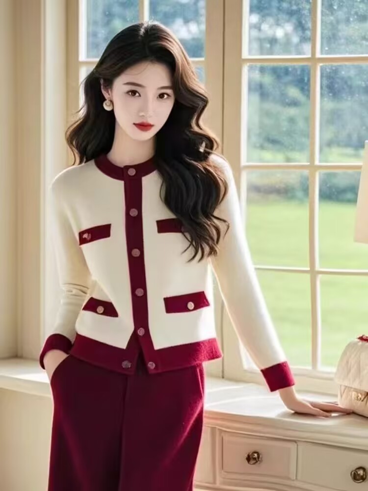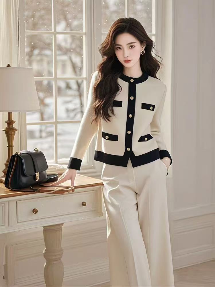 프렌치 스타일 긴팔 스웨터 여성용 2024 겨울 신상 배색 감각적인 니트 가디건 상의 트렌디스토어 가기