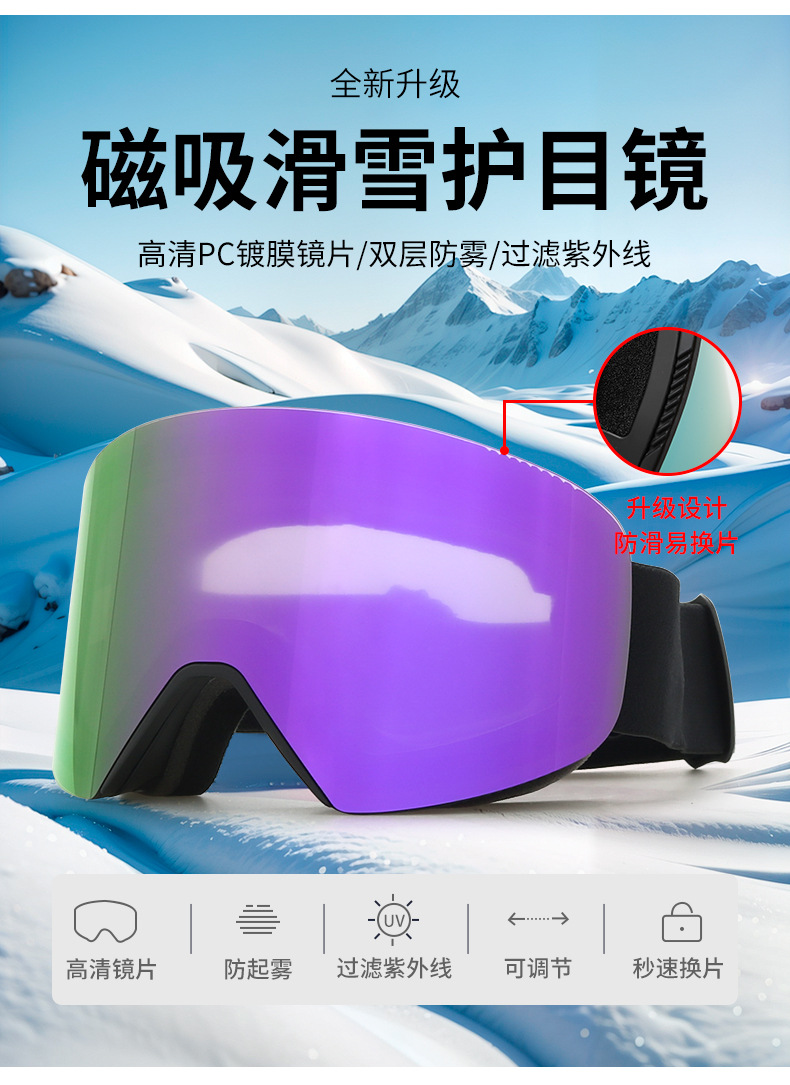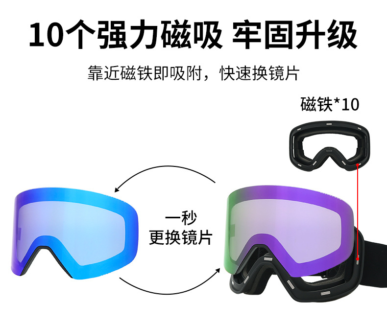 2025 업그레이드 된 마그네틱 스키 고글 미끄럼 방지 더블 레이어 안티 안개 스키 헬멧 등산 스노우 고글