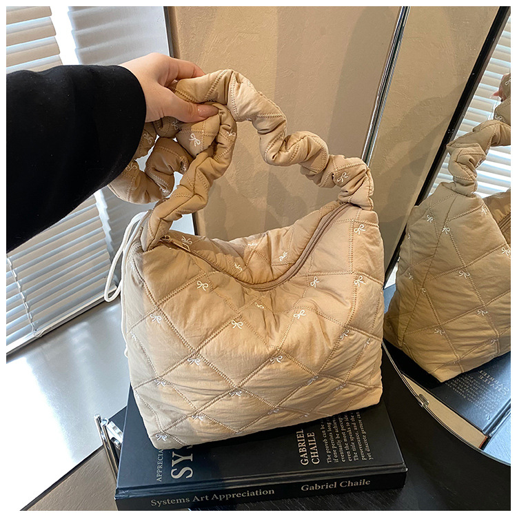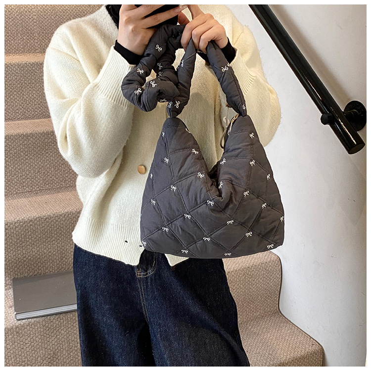 유행 간단한 구름 가방 여성 유행 작은 대용량 면 여성 가방 세련된 활 올 매치 여자 어깨 가방