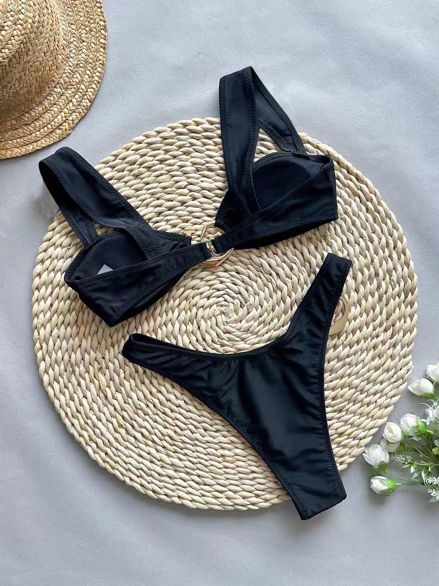 2026 신상 휴양지 스타일 섹시한 컷아웃 비키니 유럽 및 미국 트렌드 단색 비키니 수영복 도매