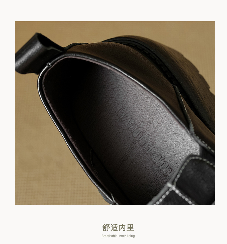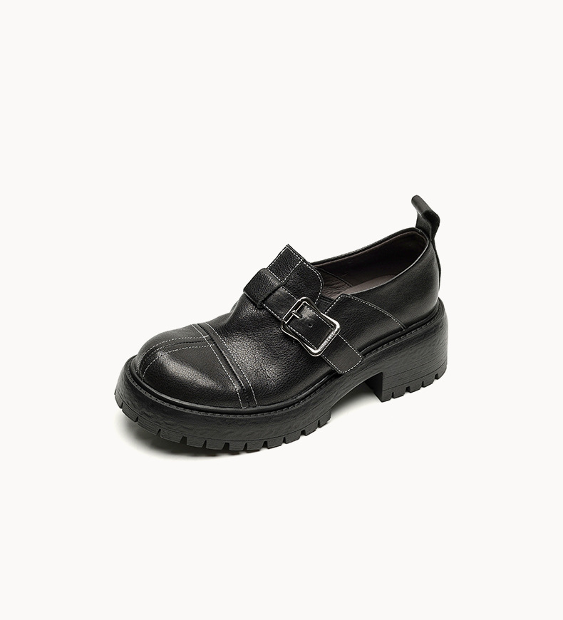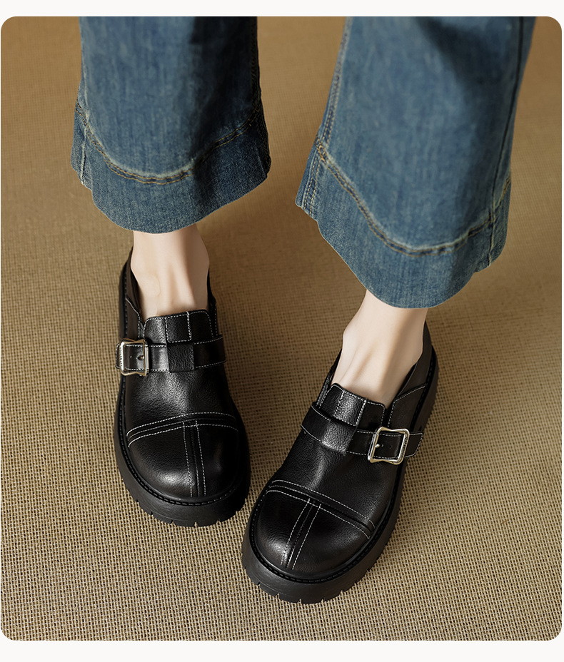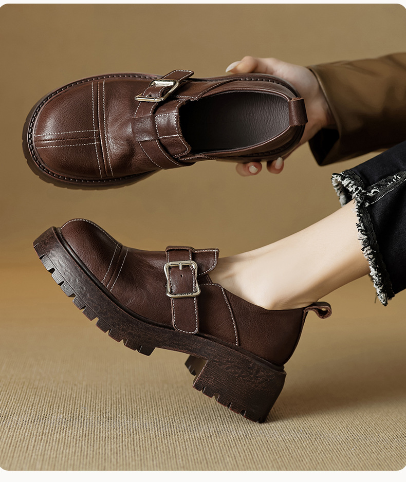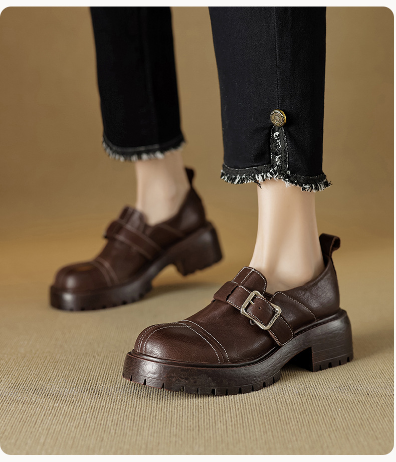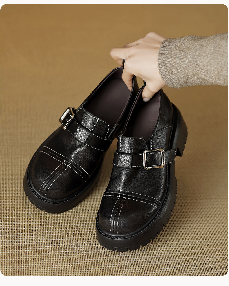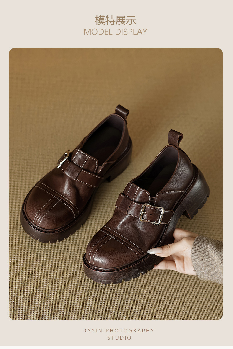 기모 영국 스타일 두꺼운 바닥 가죽 신발 여성 정품 가죽 두꺼운 힐 로퍼 2025 새로운 봄 하이힐 게으른 신발스토어 가기