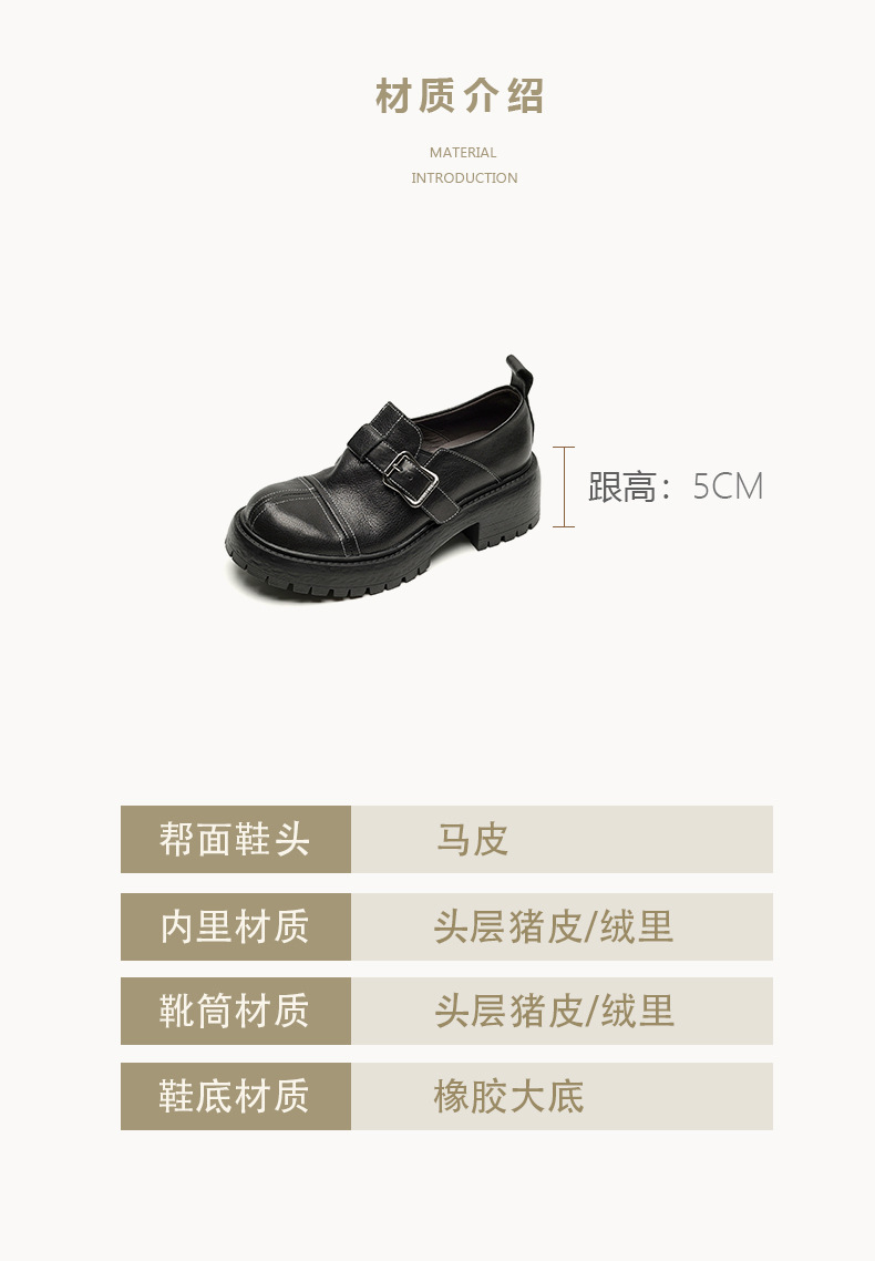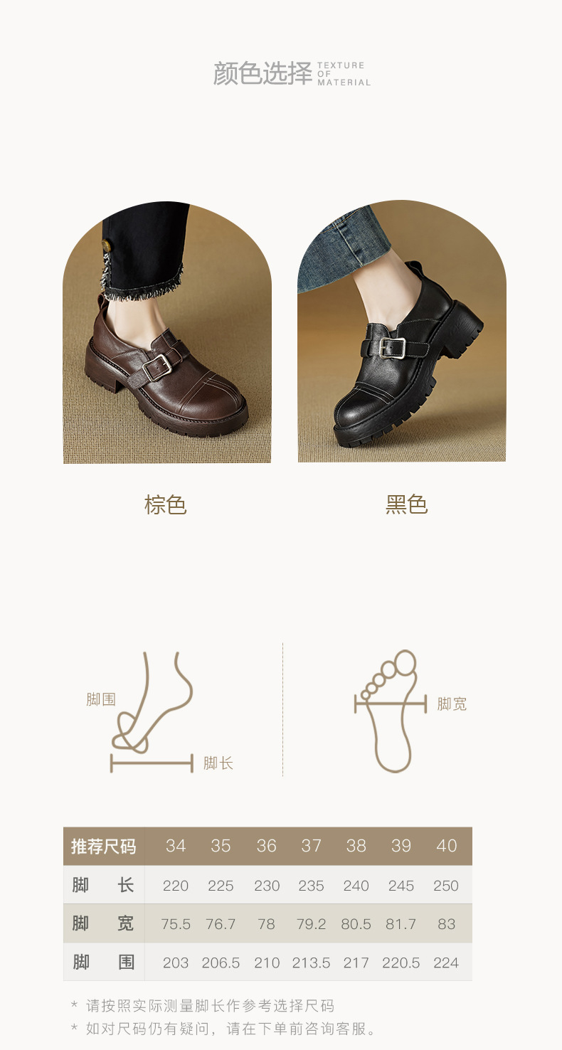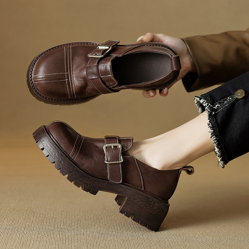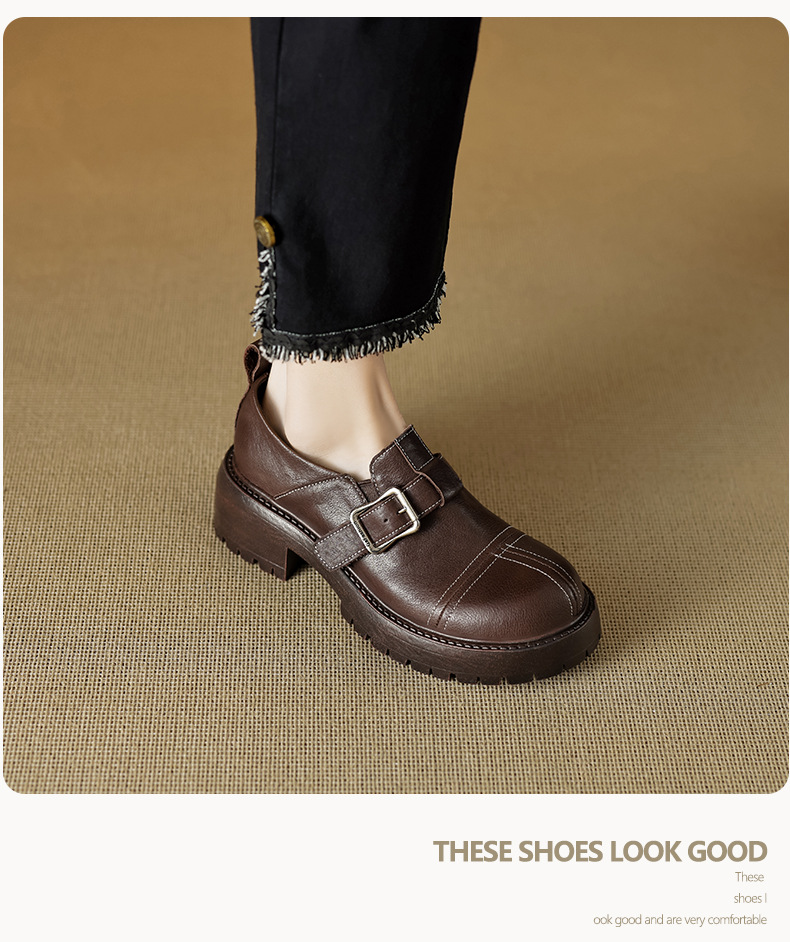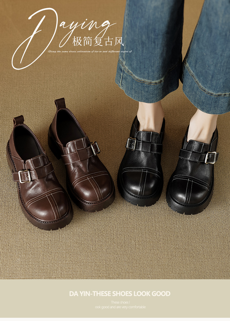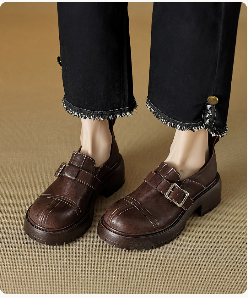기모 영국 스타일 두꺼운 바닥 가죽 신발 여성 정품 가죽 두꺼운 힐 로퍼 2025 새로운 봄 하이힐 게으른 신발