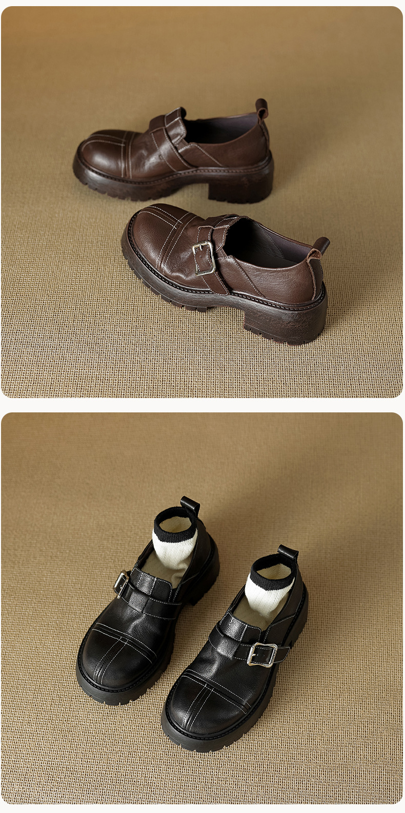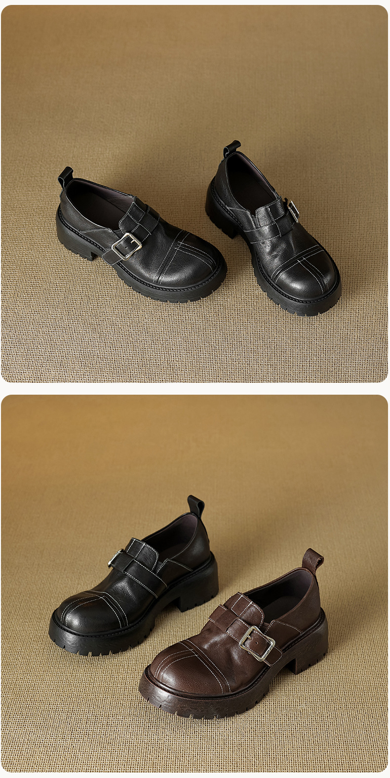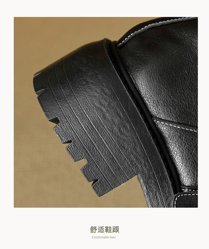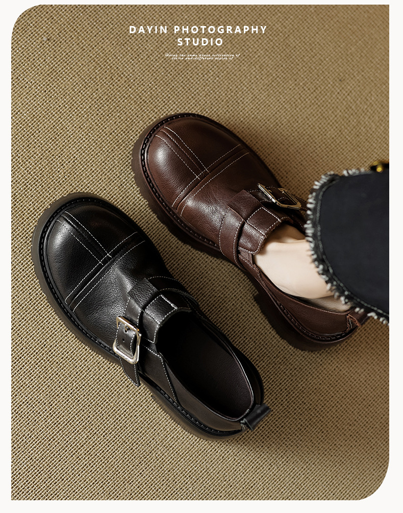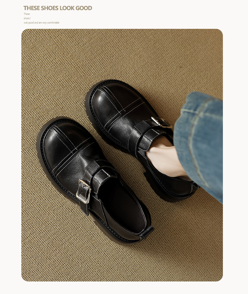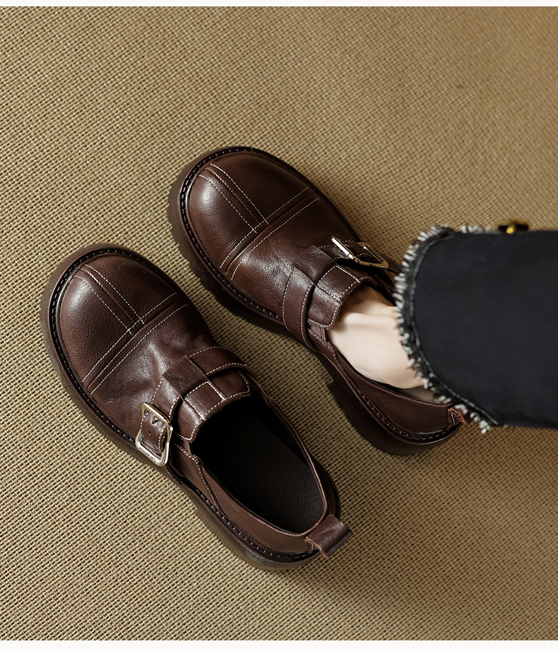 기모 영국 스타일 두꺼운 바닥 가죽 신발 여성 정품 가죽 두꺼운 힐 로퍼 2025 새로운 봄 하이힐 게으른 신발