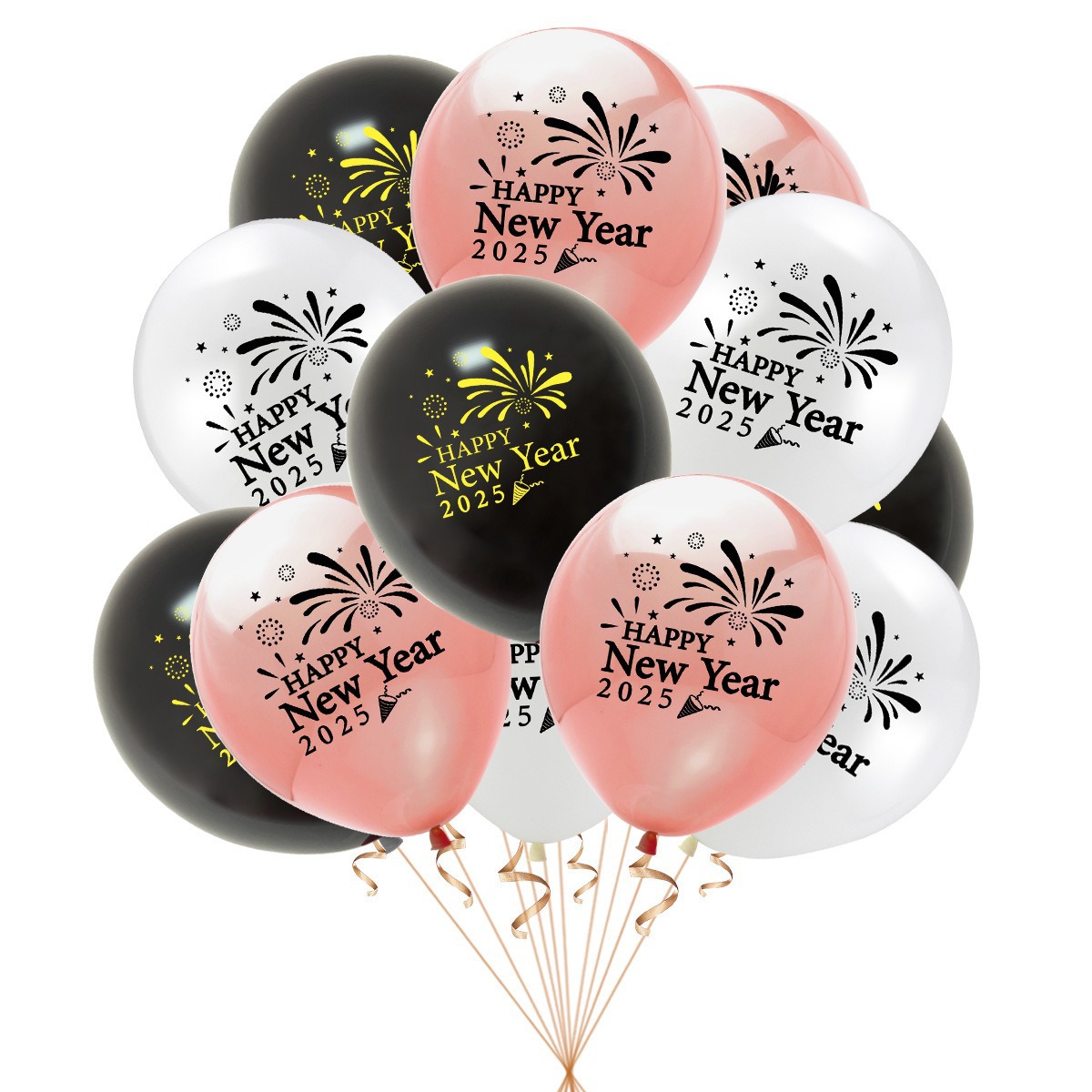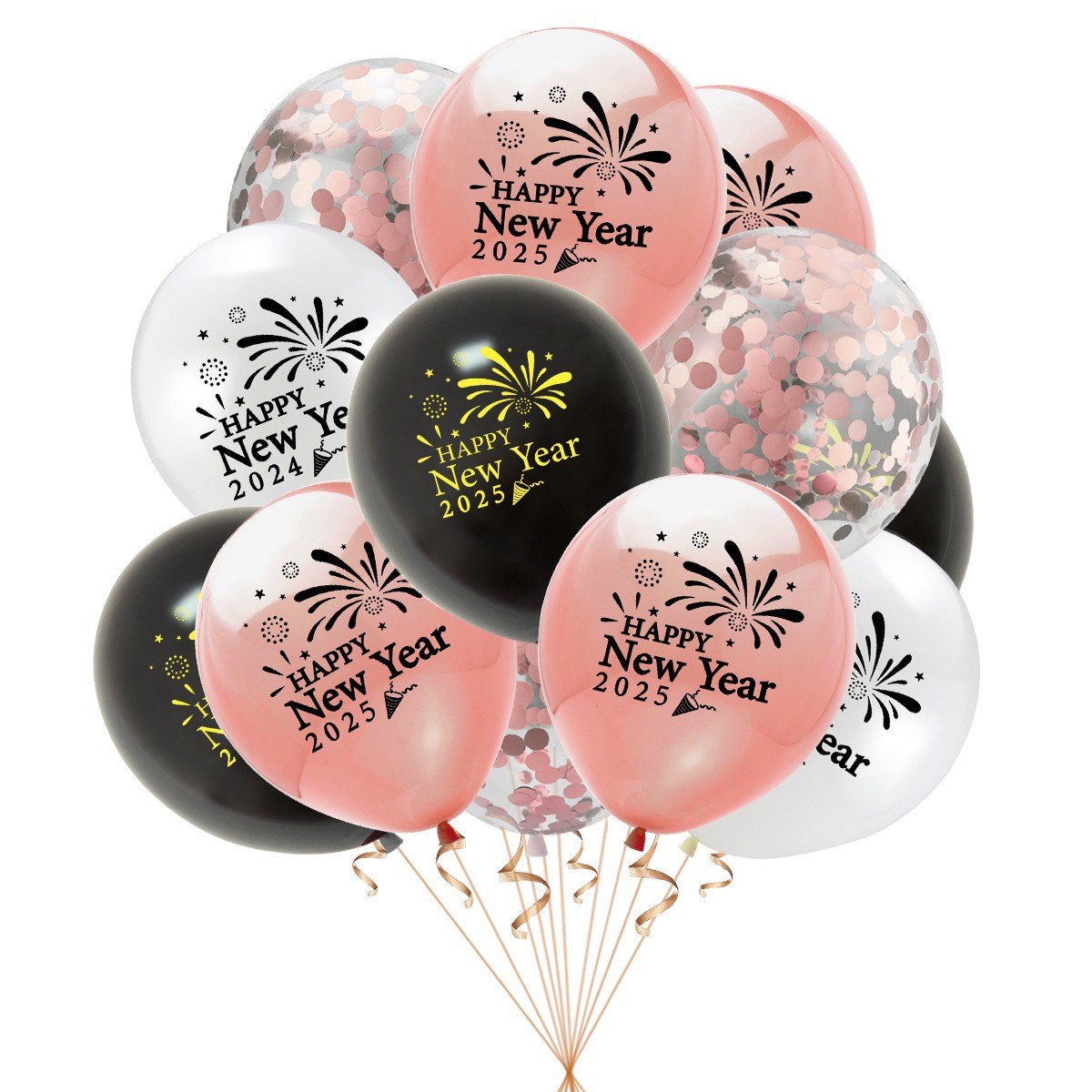 2025 년 새해 테마 파티 장식 해피 뉴 이어 로즈 골드 풍선 세트