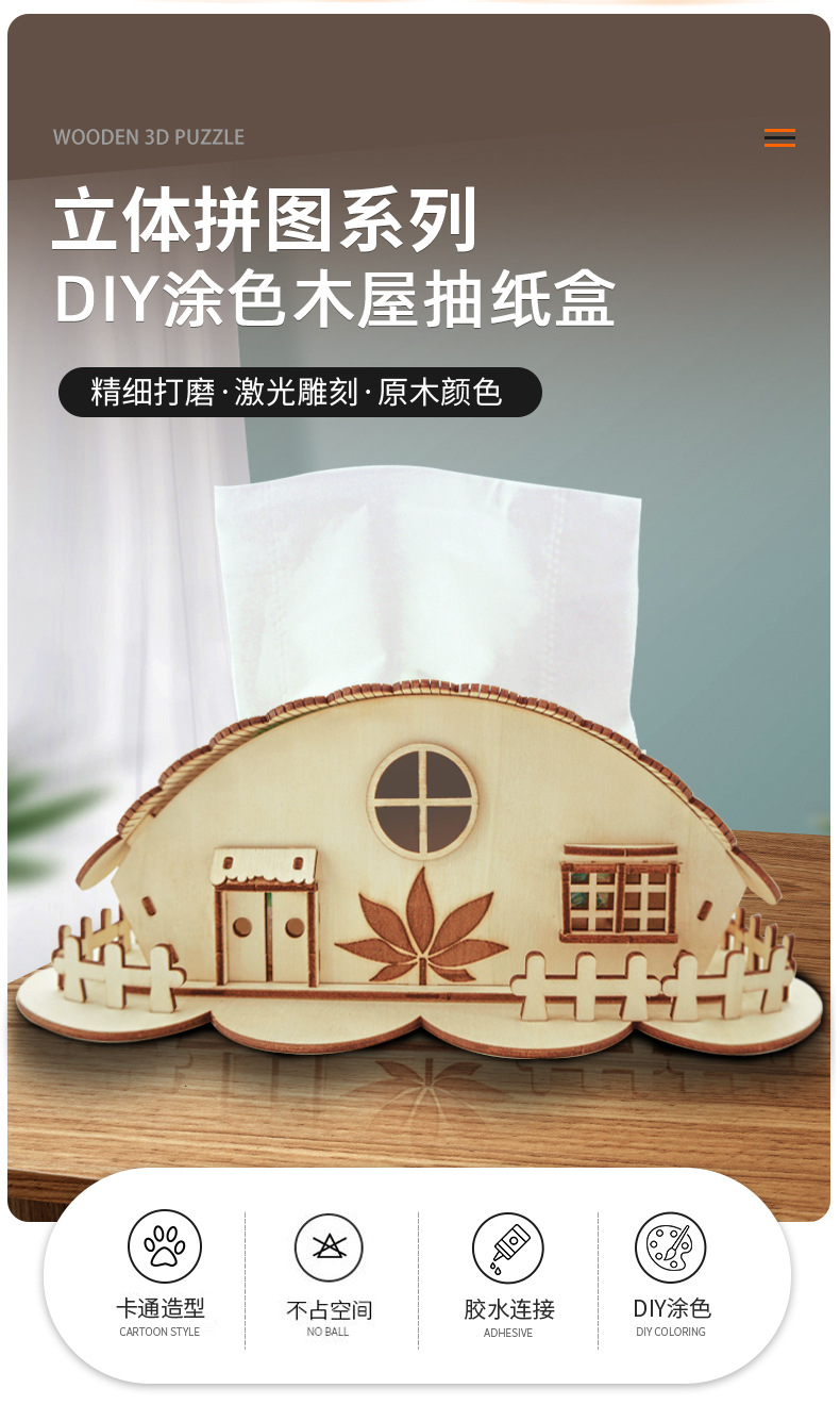 국경 간 맞춤형 신제품 puzzle3D 입체 퍼즐 수제 diy 나무 퍼즐 Amazon 종이 상자스토어 가기