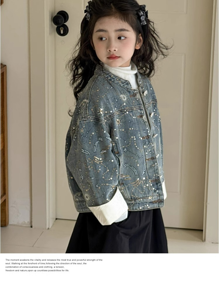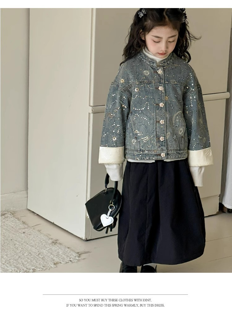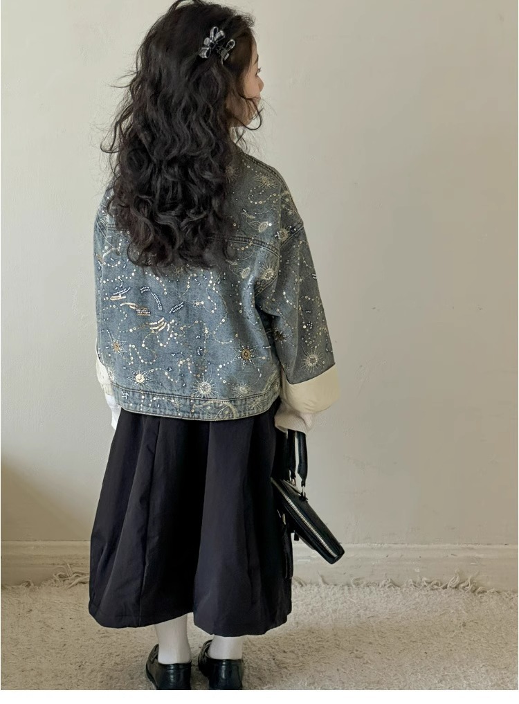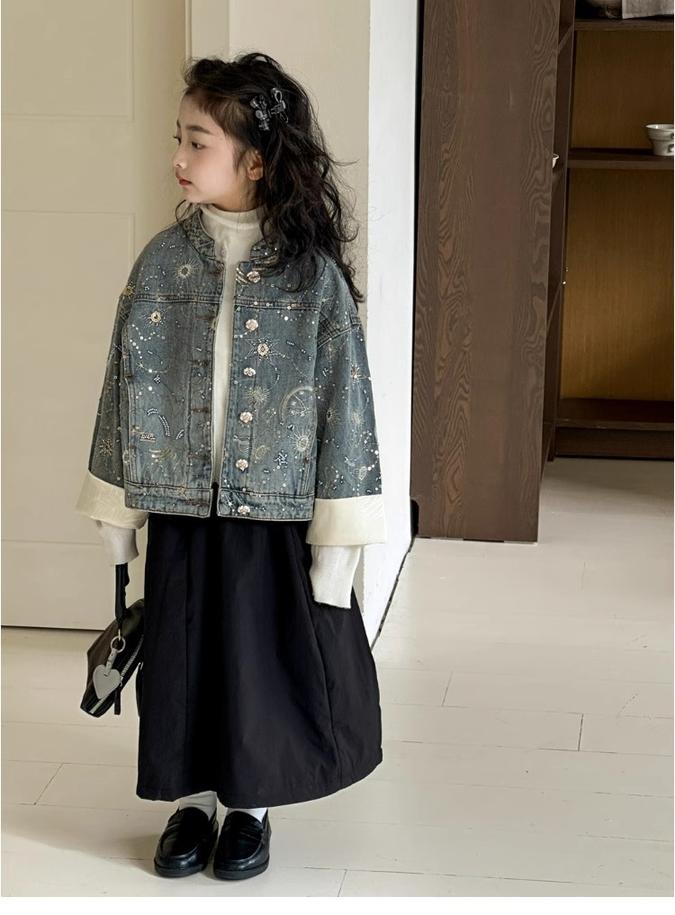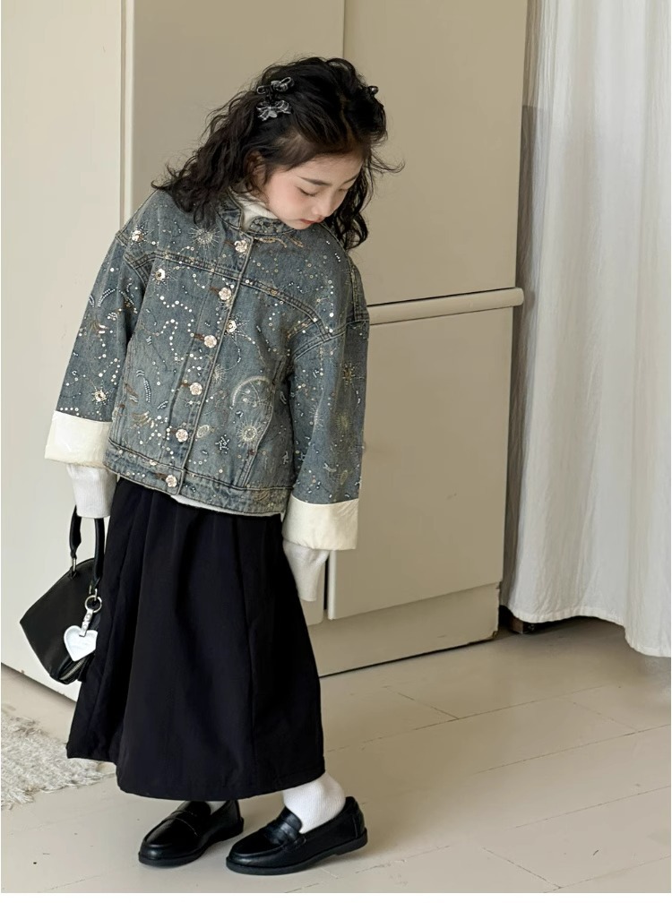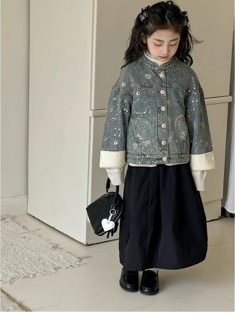 소녀 코트 새로운 중국 스타일 국가 스타일 어린이 코튼 두꺼운 데님 코트 가을 및 겨울 중대형 어린이를위한 새로운 자수 재킷