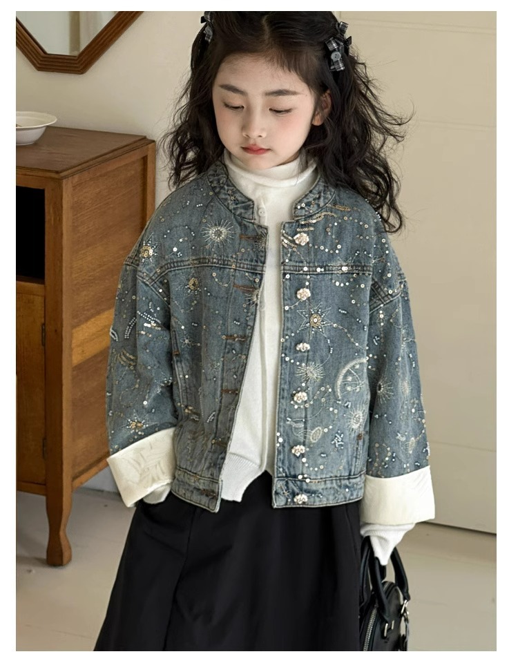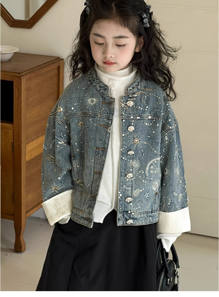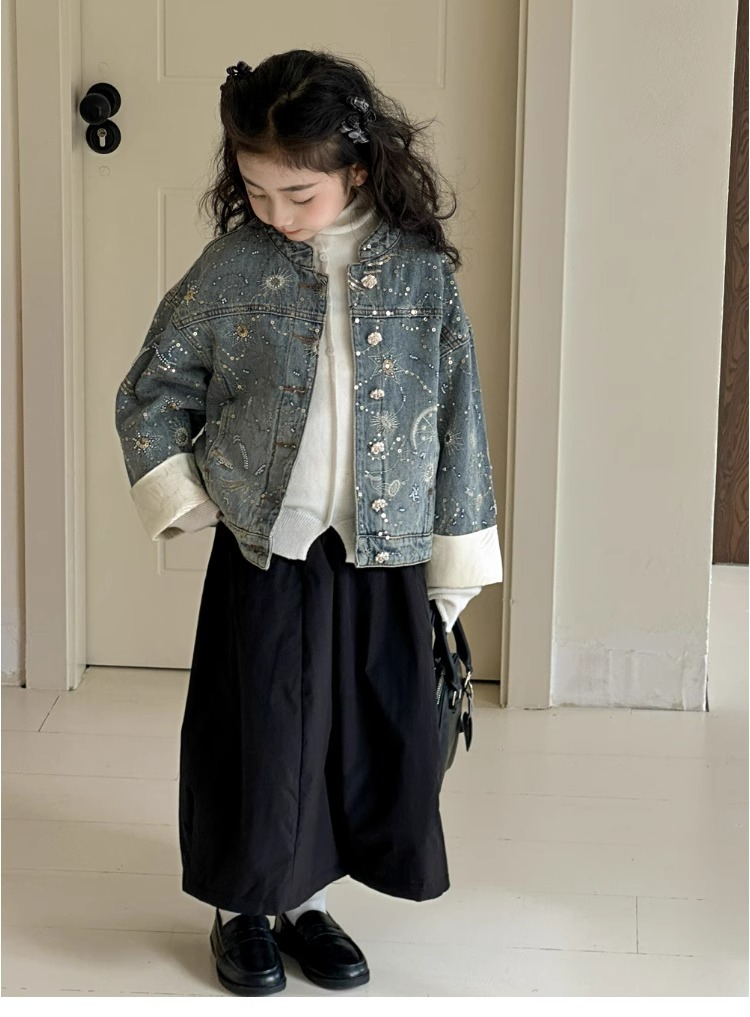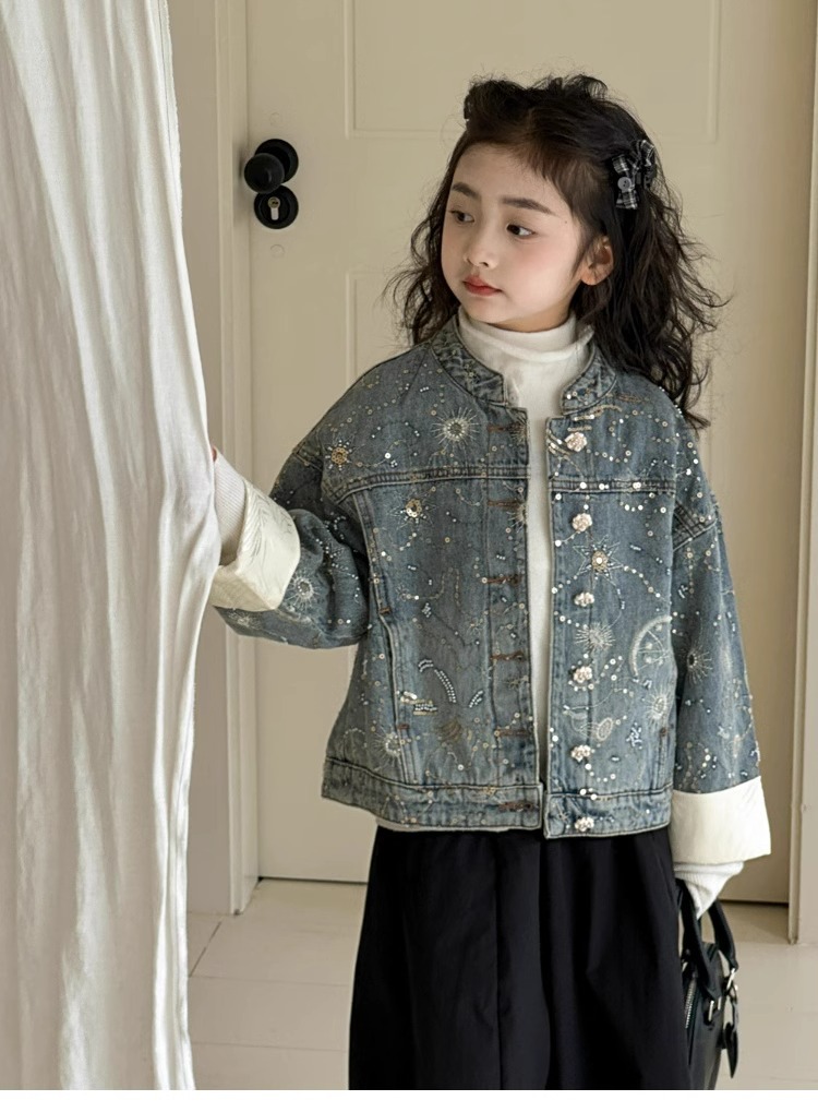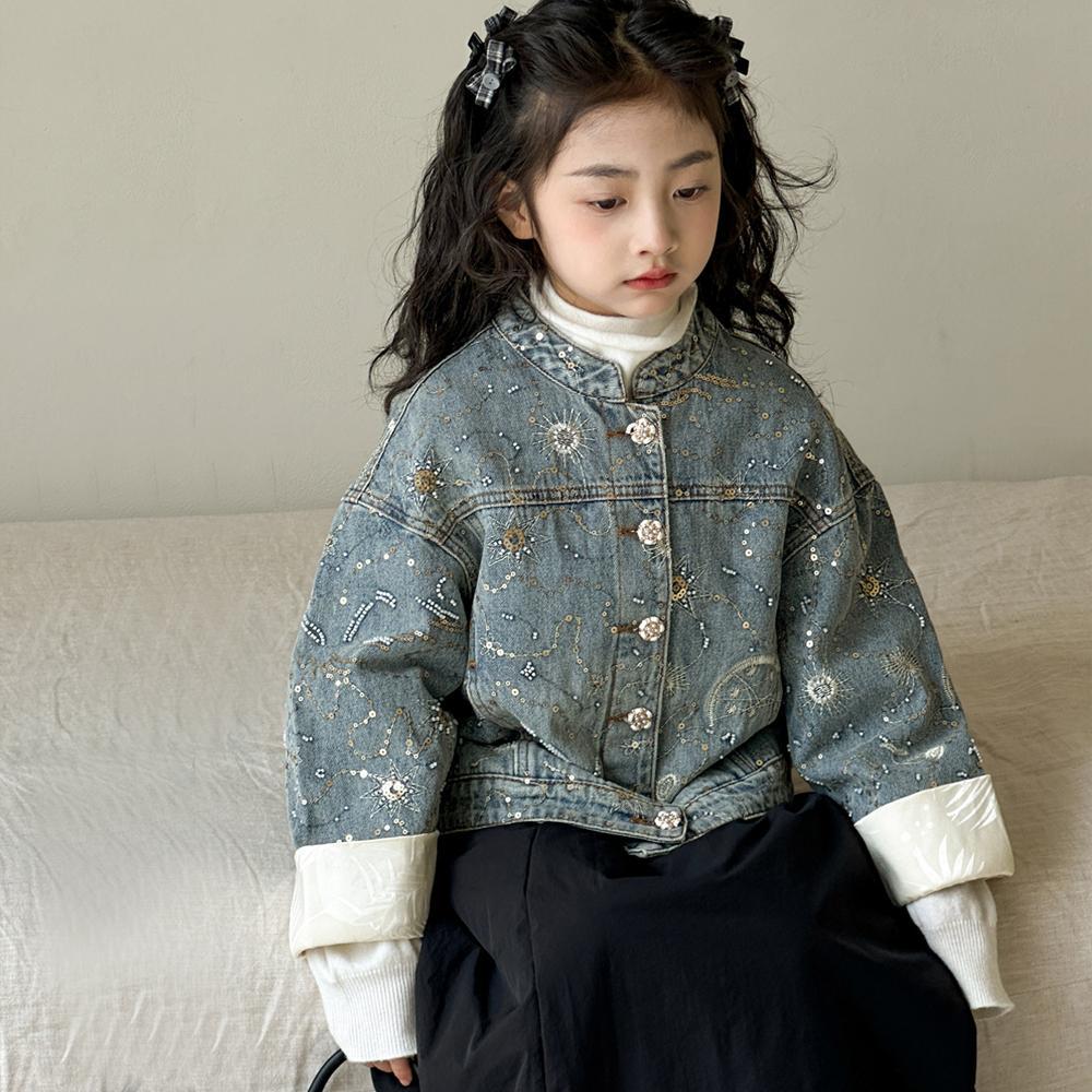 소녀 코트 새로운 중국 스타일 국가 스타일 어린이 코튼 두꺼운 데님 코트 가을 및 겨울 중대형 어린이를위한 새로운 자수 재킷스토어 가기