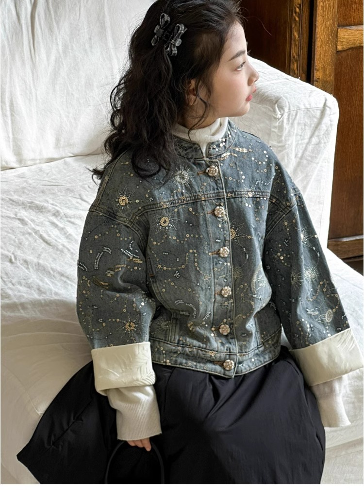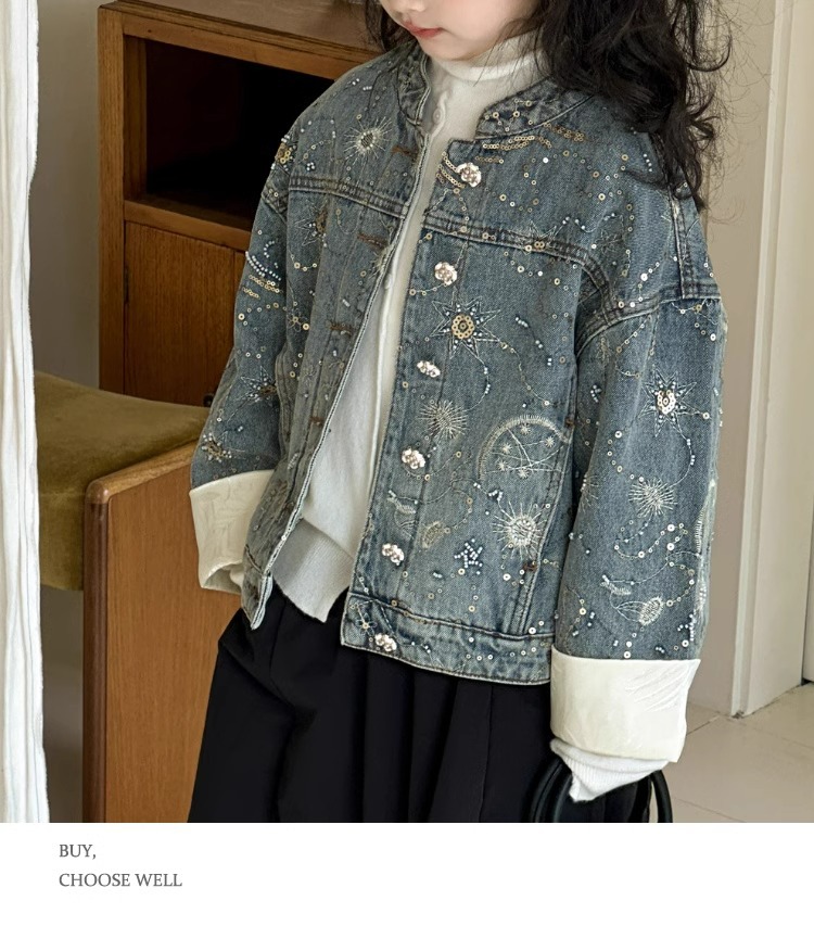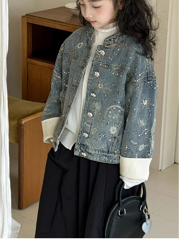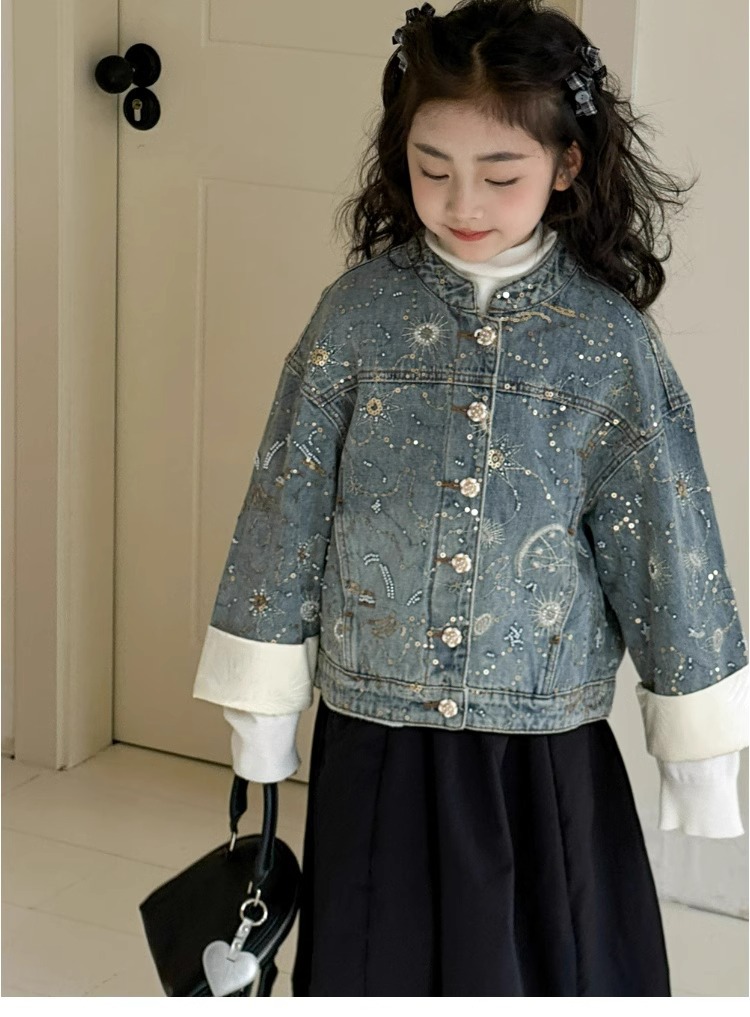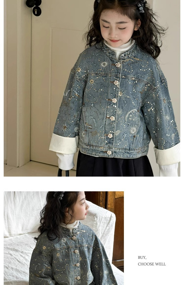 소녀 코트 새로운 중국 스타일 국가 스타일 어린이 코튼 두꺼운 데님 코트 가을 및 겨울 중대형 어린이를위한 새로운 자수 재킷스토어 가기
