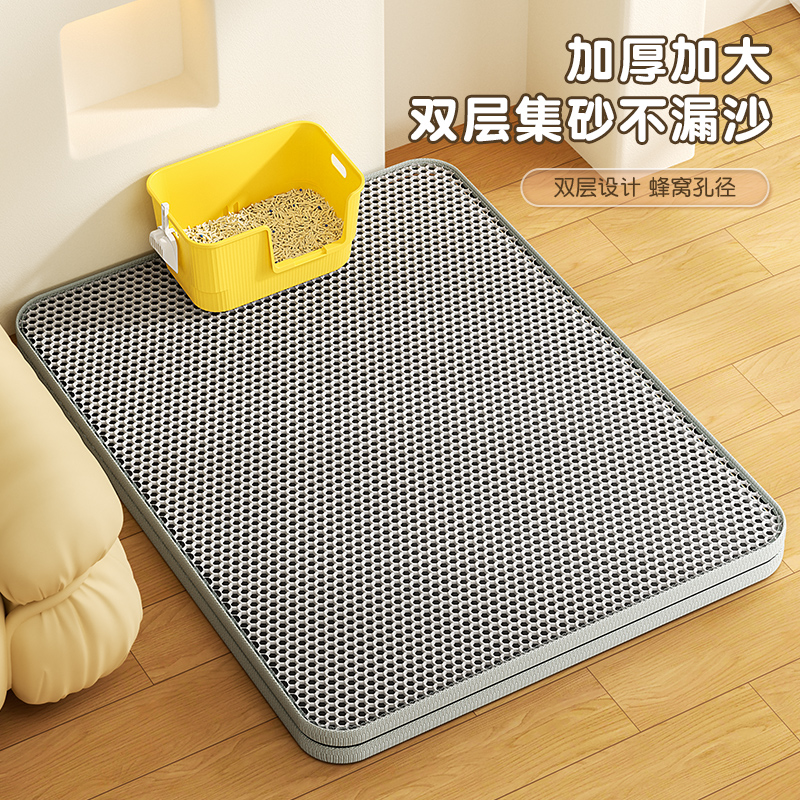 • ⭐ 베스트셀러 90*60 고양이 모래 매트 - 이중층 농축 [우아한 회색]
