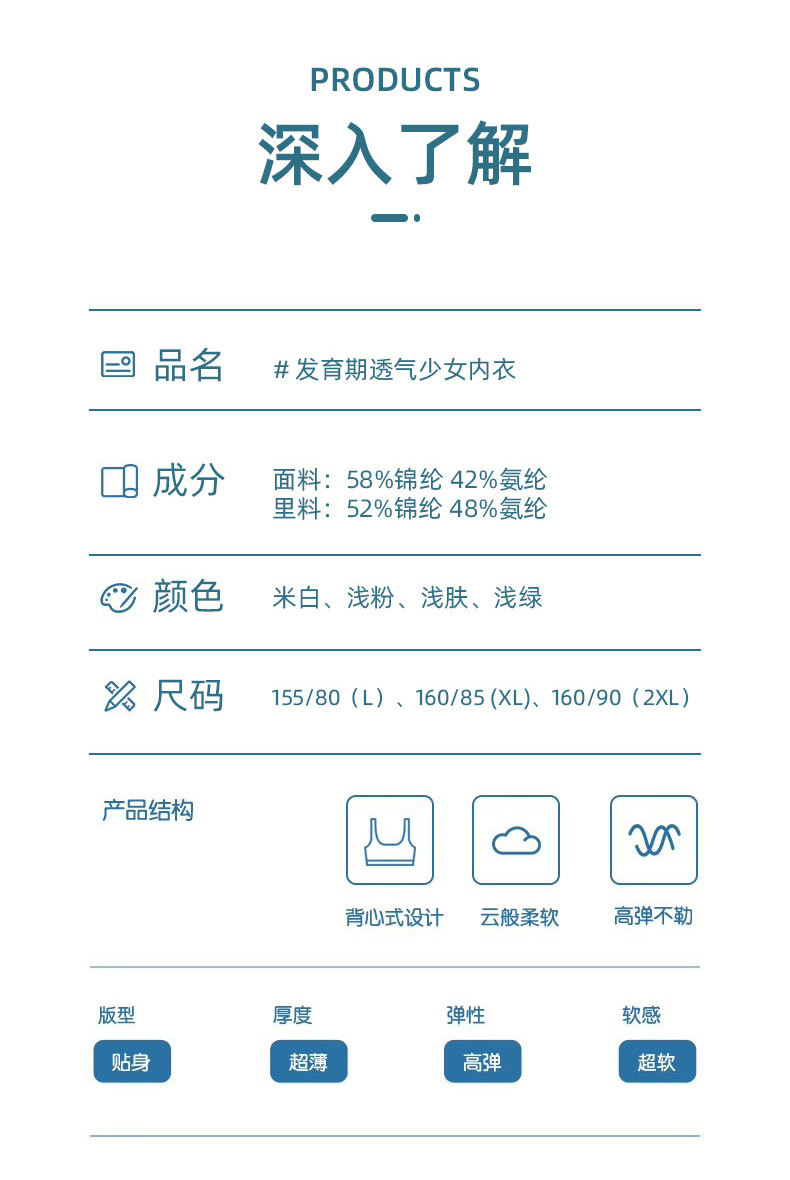 여자를위한 추적없는 학생 속옷 소녀의 발달 단계 2 단계 조끼 추적없는 원피스 스포츠 통기성 속옷