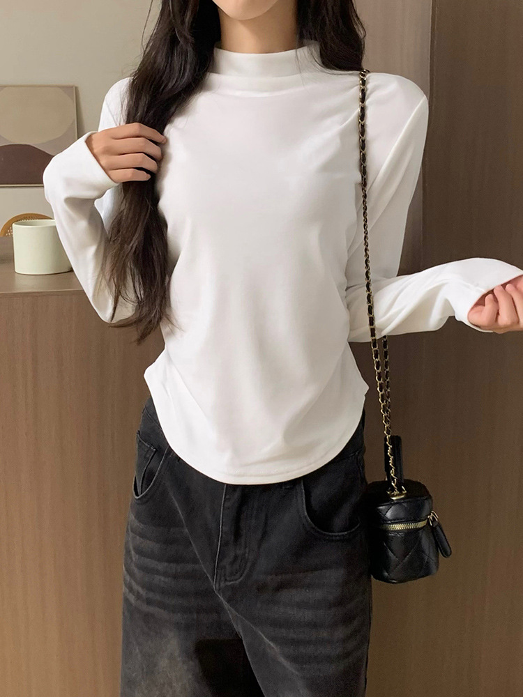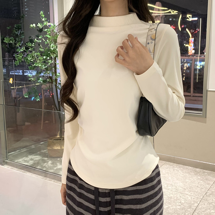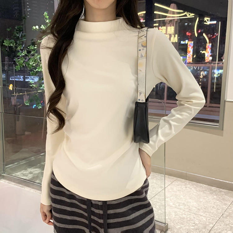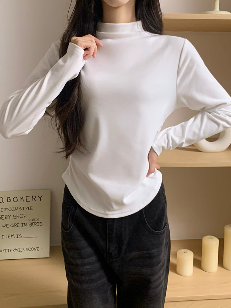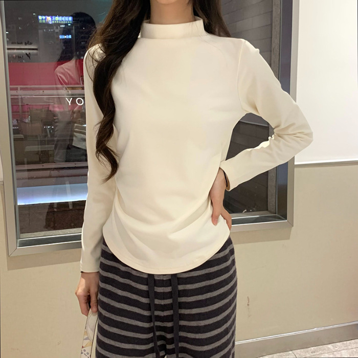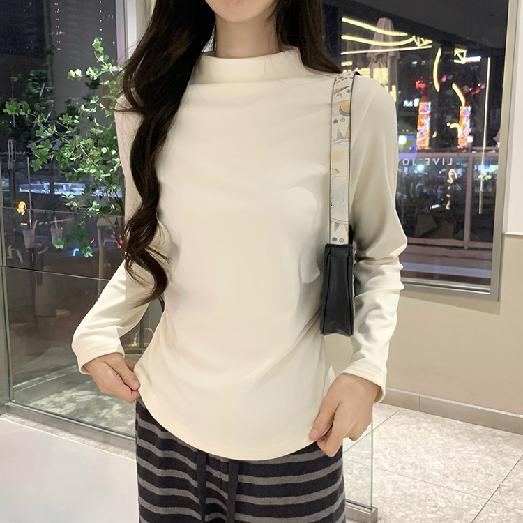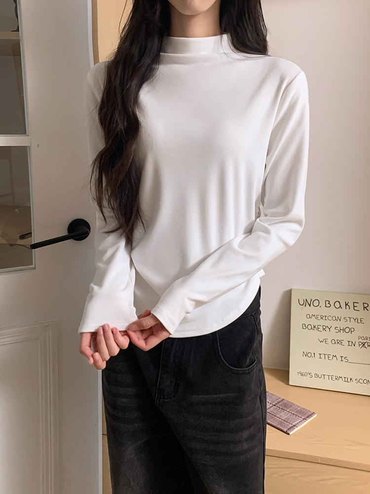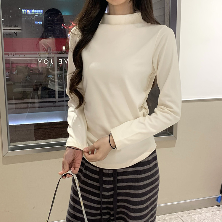 국경 도매 가을과 겨울 실제 샷 스레드 벨벳 세미 하이 칼라 따뜻한 긴 소매 티셔츠 여성용 슬림베이스 셔츠스토어 가기