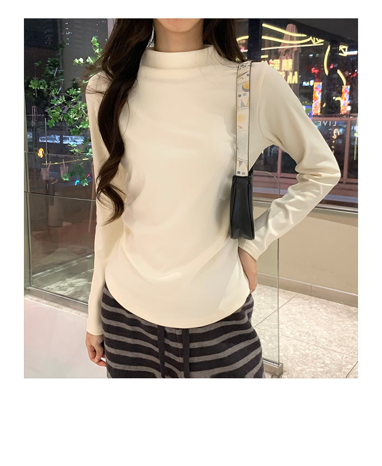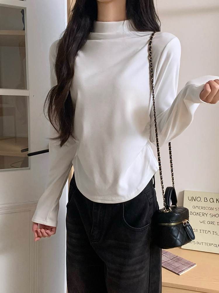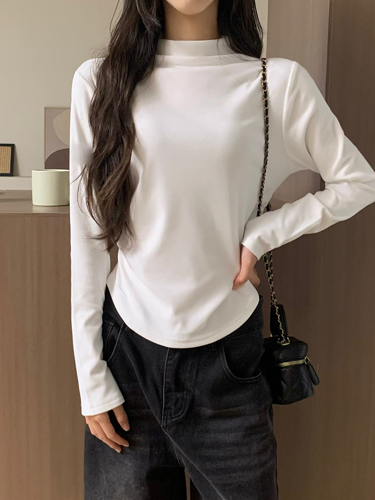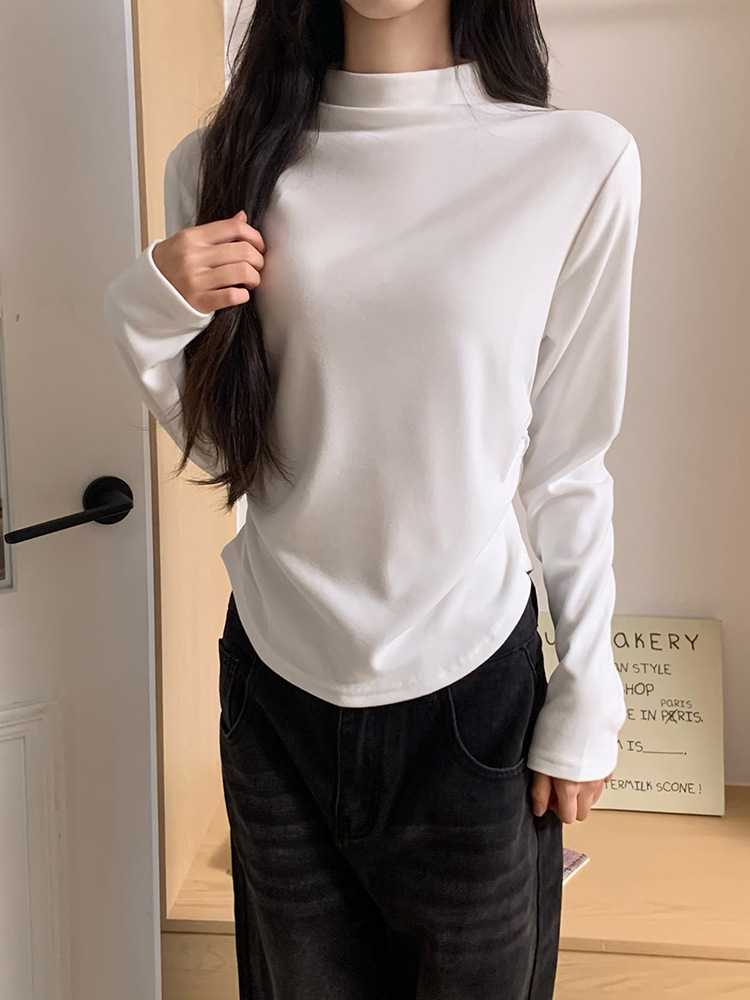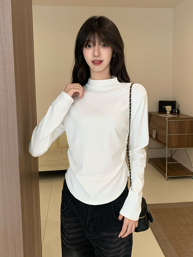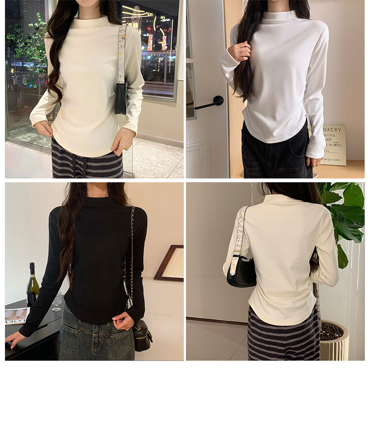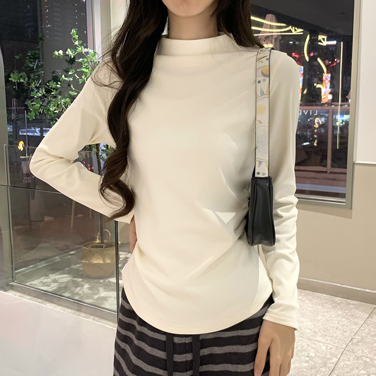 국경 도매 가을과 겨울 실제 샷 스레드 벨벳 세미 하이 칼라 따뜻한 긴 소매 티셔츠 여성용 슬림베이스 셔츠스토어 가기