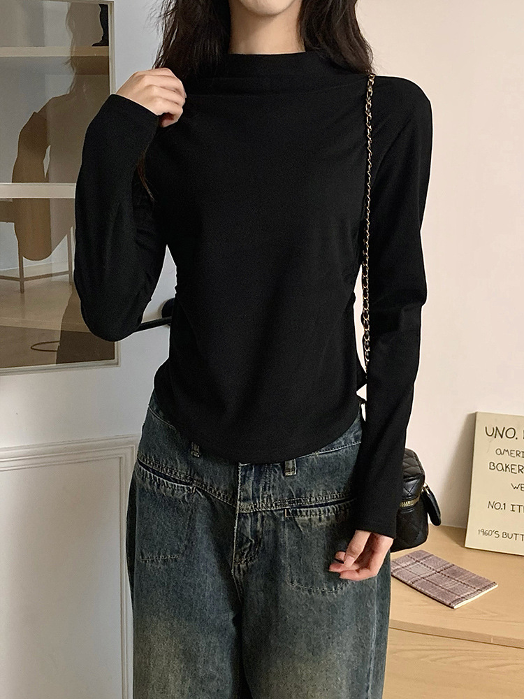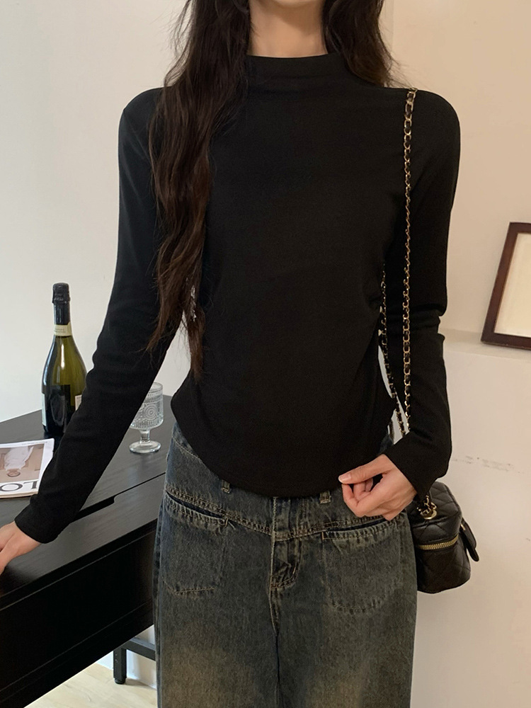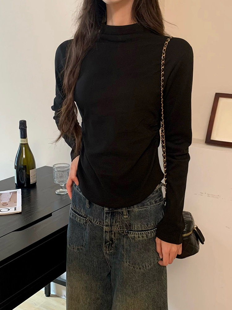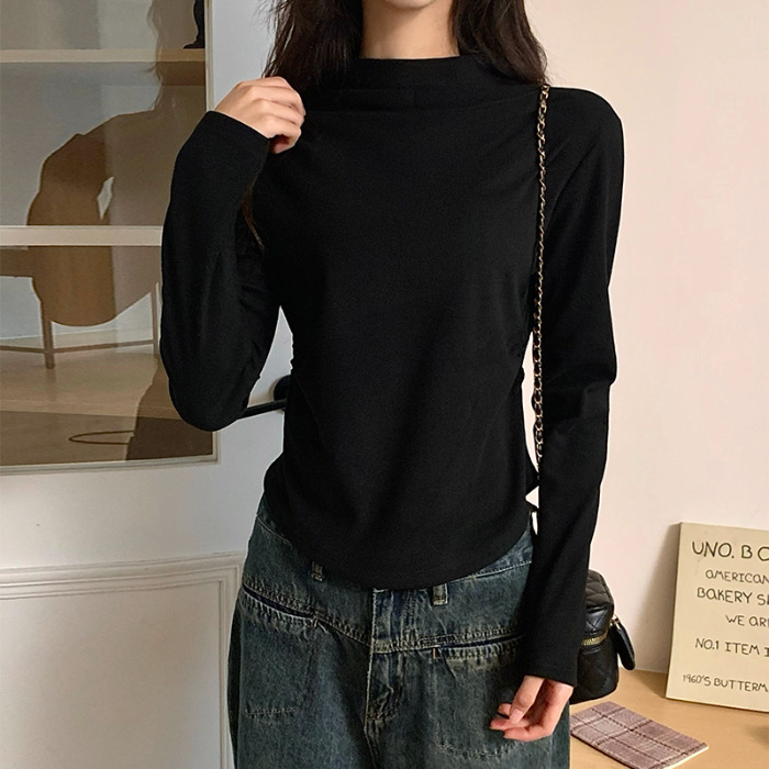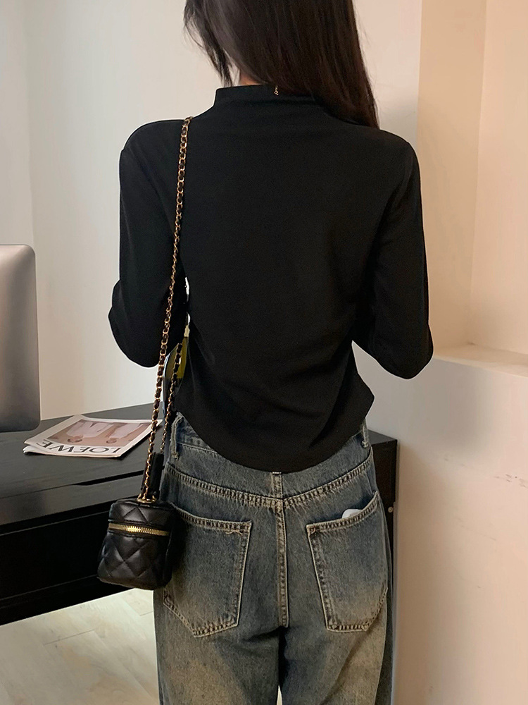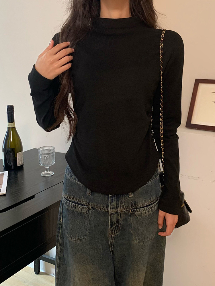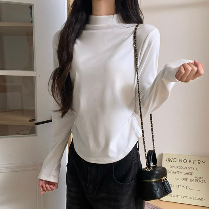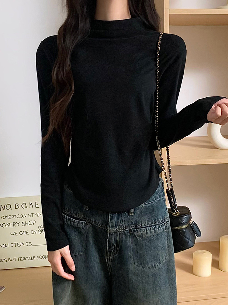 국경 도매 가을과 겨울 실제 샷 스레드 벨벳 세미 하이 칼라 따뜻한 긴 소매 티셔츠 여성용 슬림베이스 셔츠스토어 가기