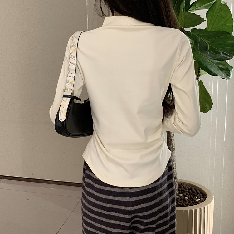 국경 도매 가을과 겨울 실제 샷 스레드 벨벳 세미 하이 칼라 따뜻한 긴 소매 티셔츠 여성용 슬림베이스 셔츠