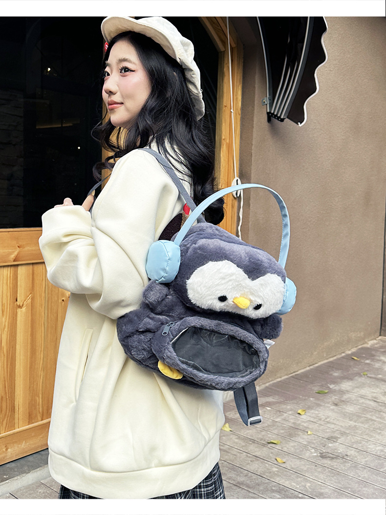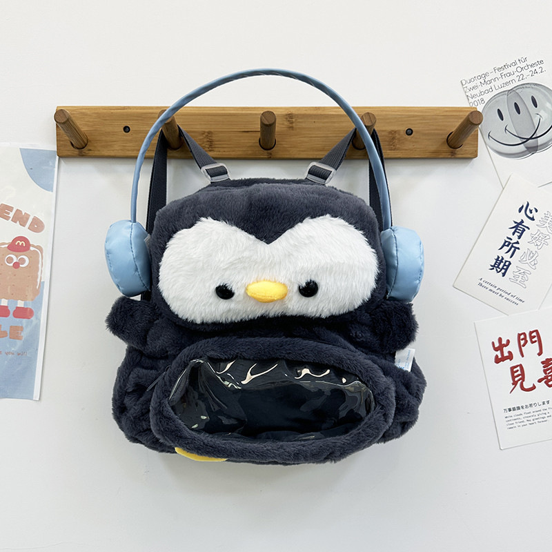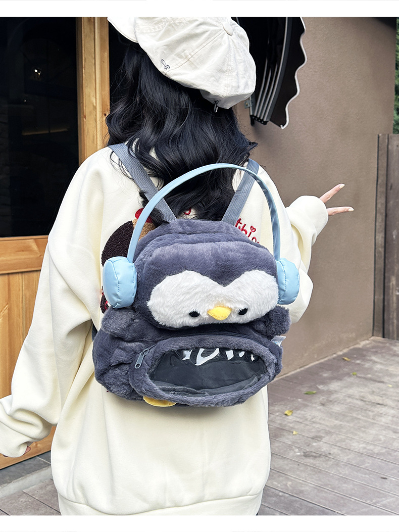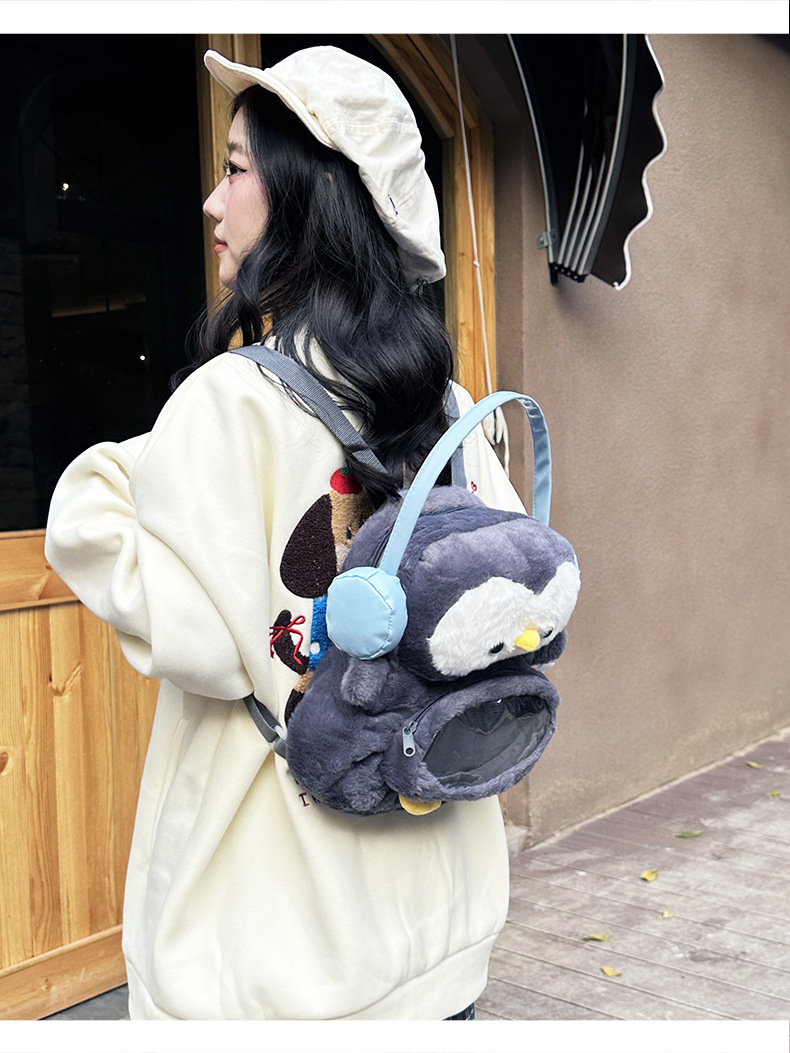 만화 새로운 귀여운 헤드폰 펭귄 배낭 모피 양고기 대용량 더블 배낭 소녀의 심장 학교 가방스토어 가기