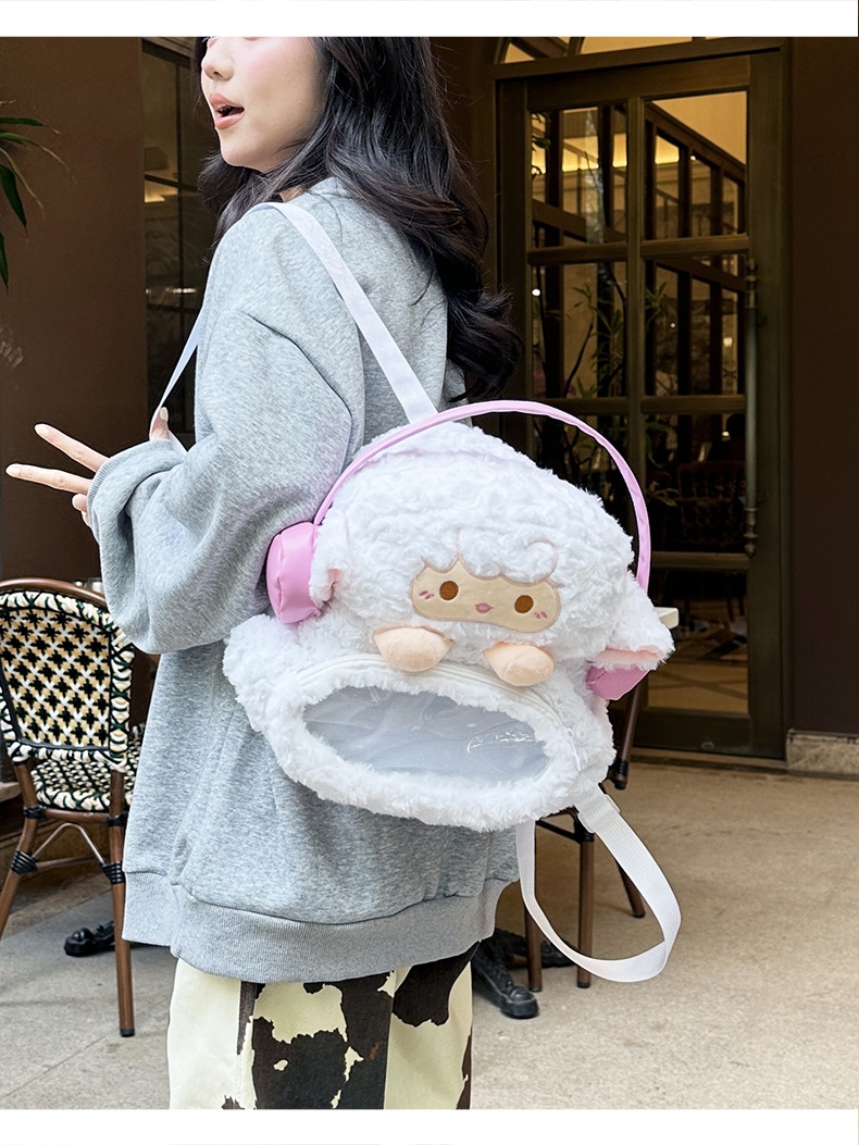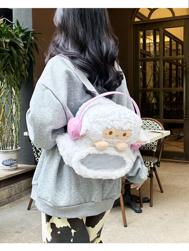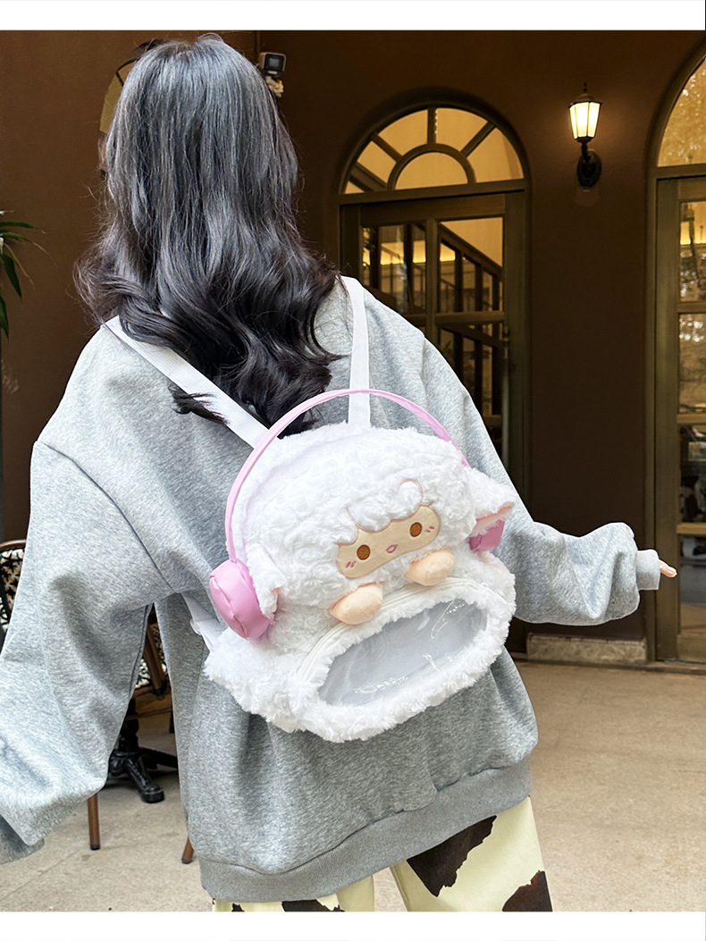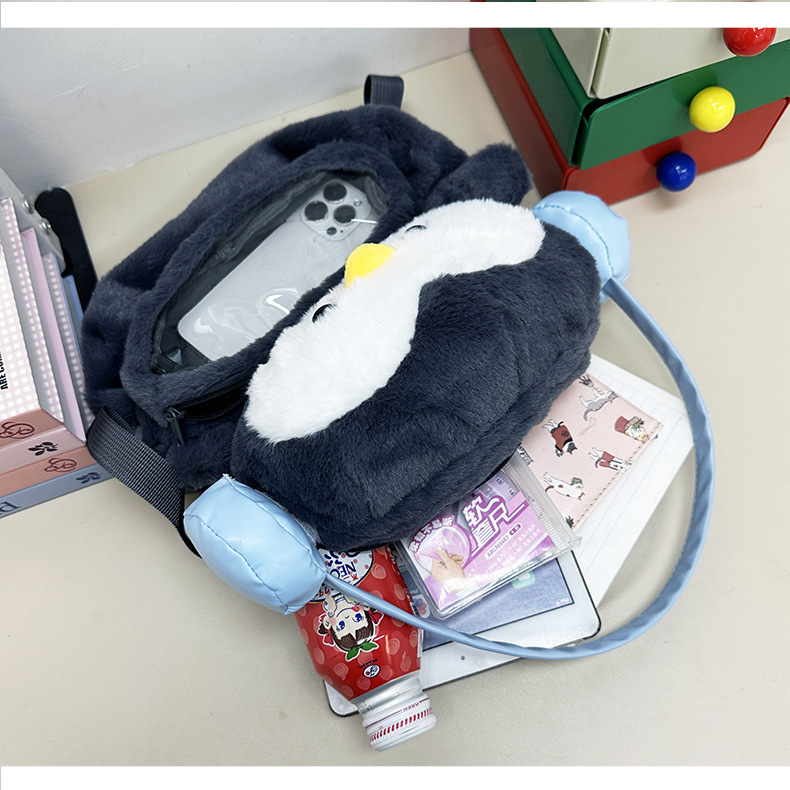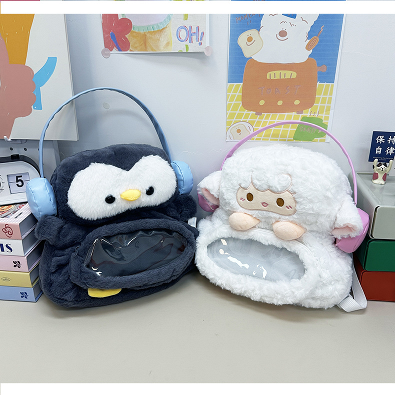 만화 새로운 귀여운 헤드폰 펭귄 배낭 모피 양고기 대용량 더블 배낭 소녀의 심장 학교 가방스토어 가기