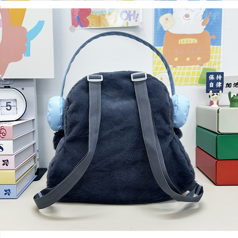 만화 새로운 귀여운 헤드폰 펭귄 배낭 모피 양고기 대용량 더블 배낭 소녀의 심장 학교 가방