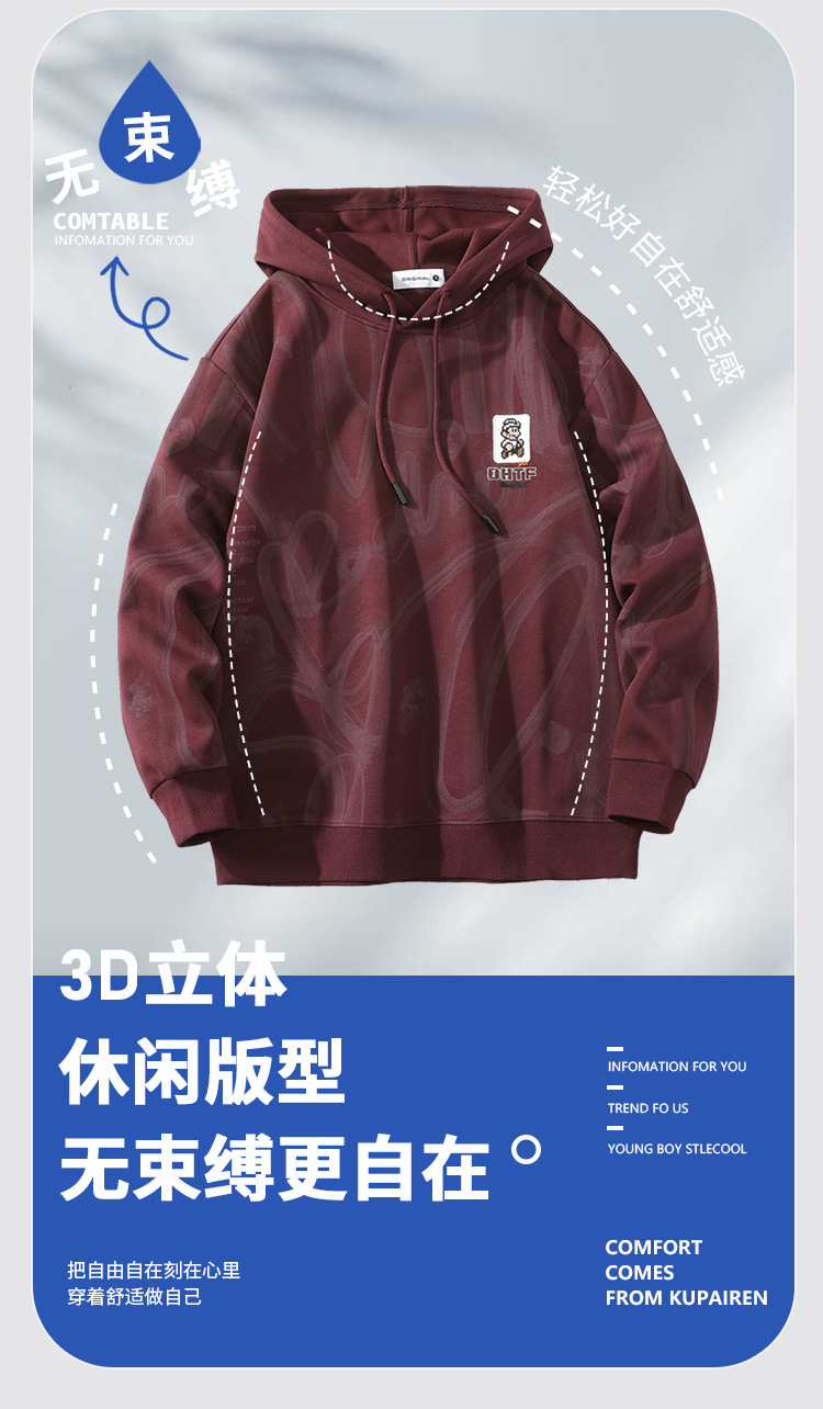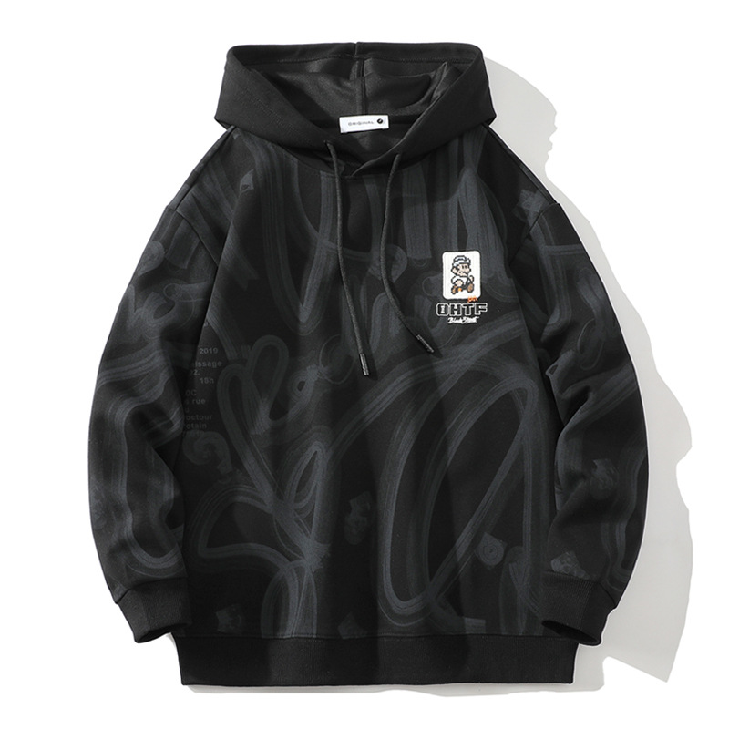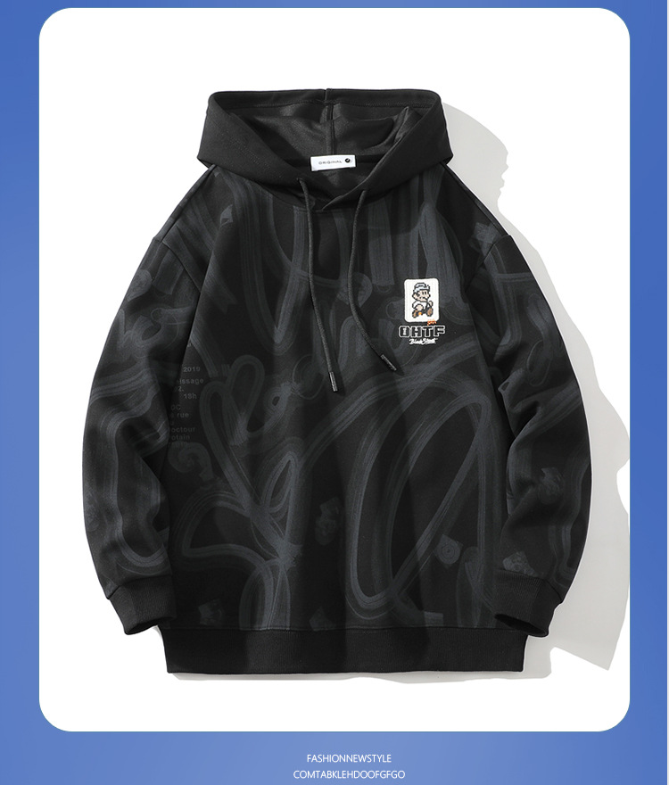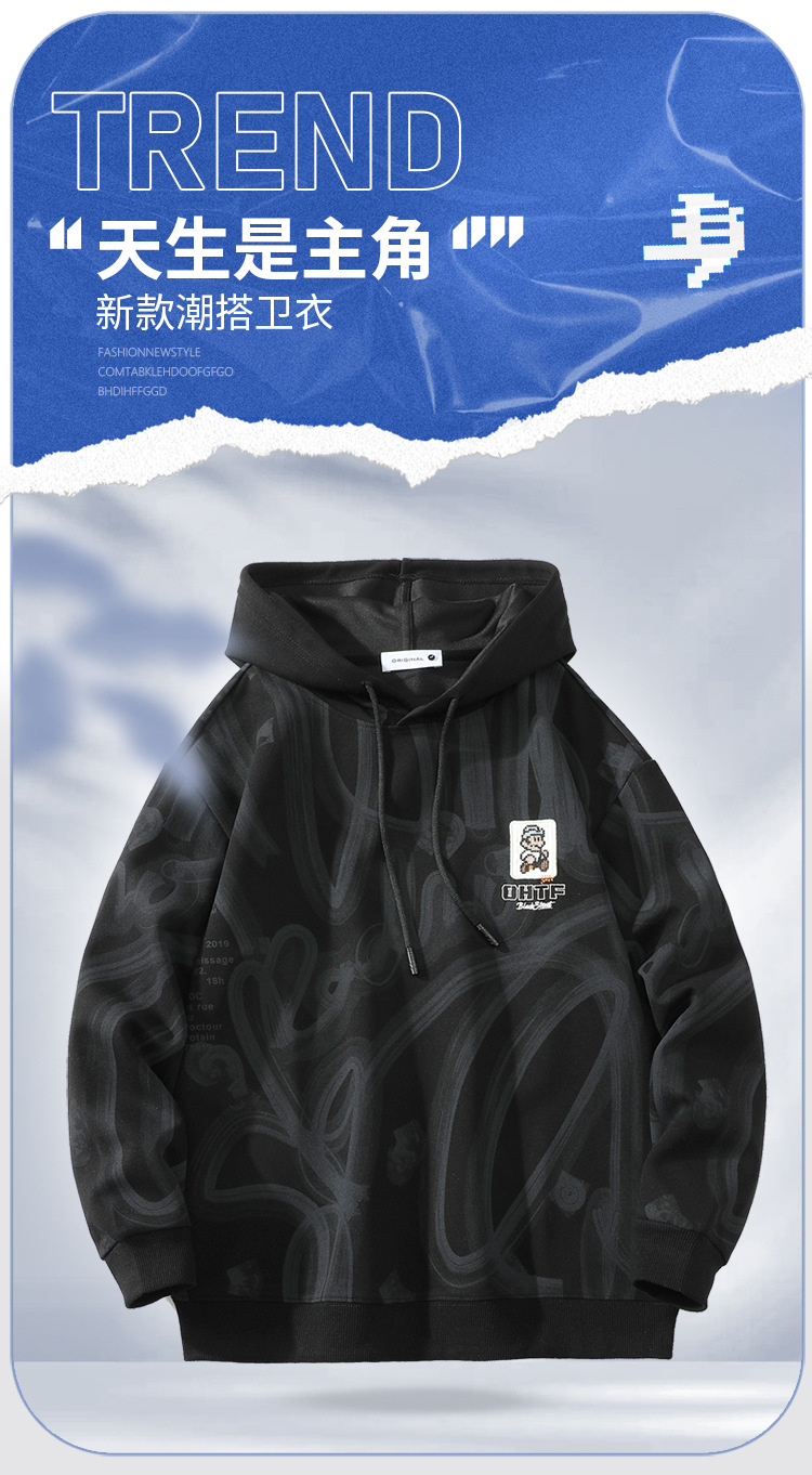 남성용 후드 스웨트 셔츠 봄과 가을 새로운 미국 스타일 트렌디 브랜드 남성용 패셔블 긴팔 탑 올 매치 캐주얼 스웨트 셔츠