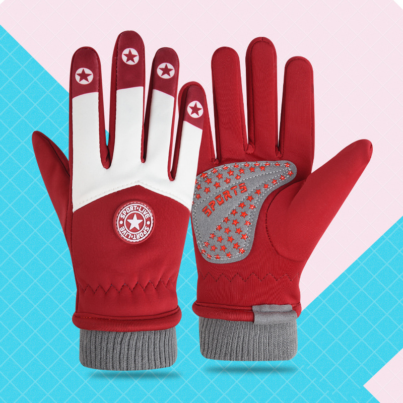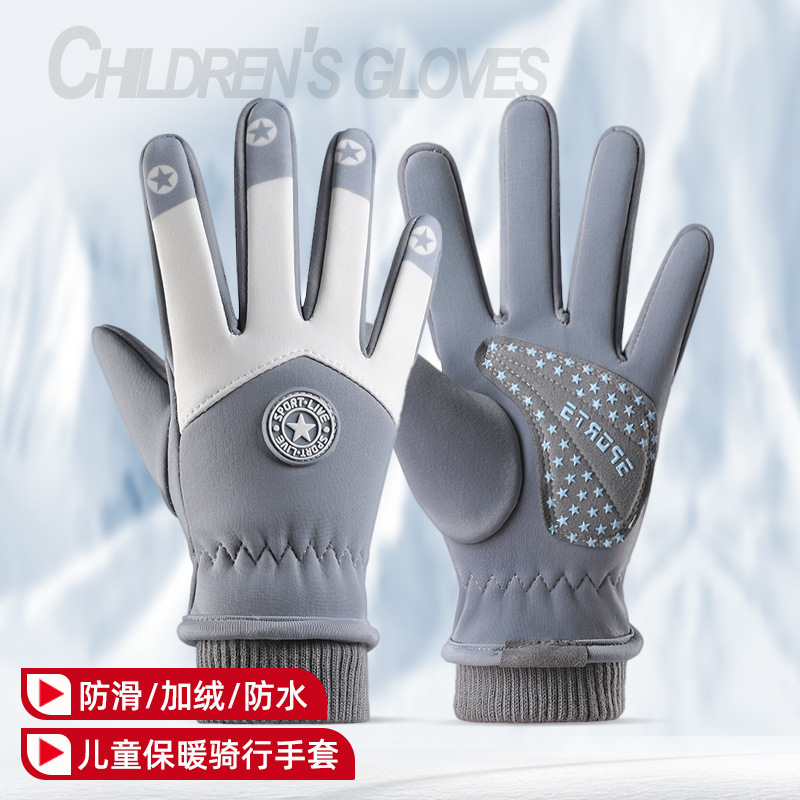 어린이 가을과 겨울 승마 장갑 미끄럼 방지 야외 사이클링 발수 기모 따뜻한 방풍 방지 스키 장갑
