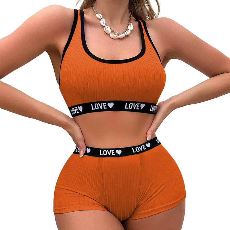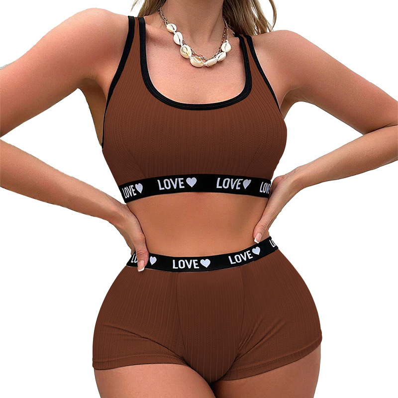 아마존 국경 간 폭발 여성 요가 피트니스 스포츠 속옷 유럽과 미국의 색 대비 문자 브래지어 반바지 세트