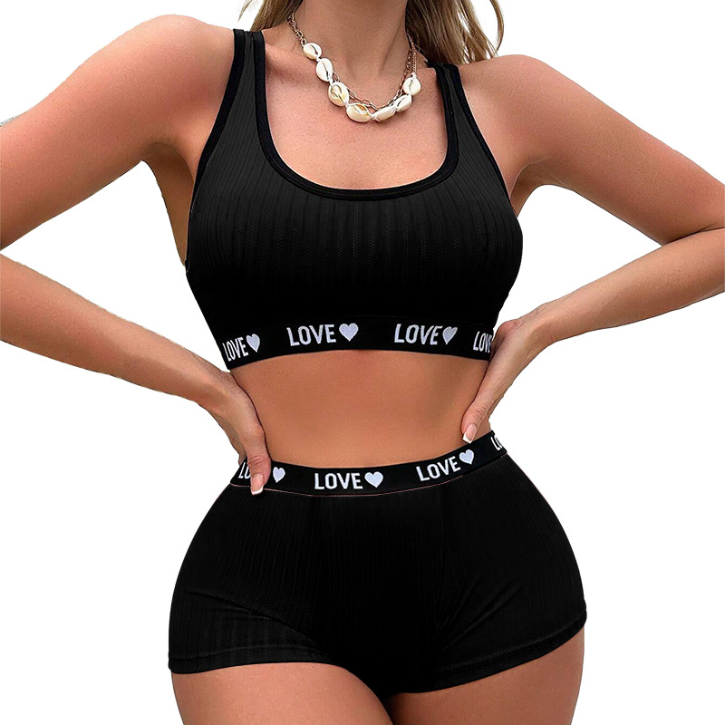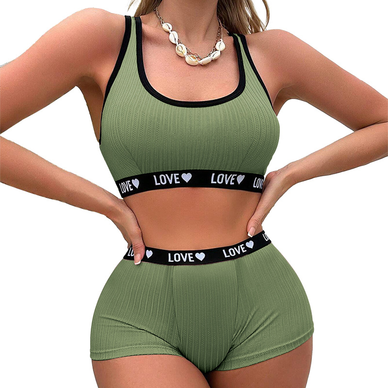 아마존 국경 간 폭발 여성 요가 피트니스 스포츠 속옷 유럽과 미국의 색 대비 문자 브래지어 반바지 세트스토어 가기