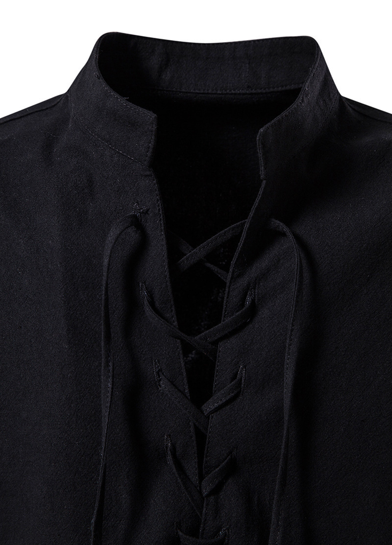 남자의 새로운 아마존 남성면 및 리넨 헨리 셔츠 긴 소매 히피 캐주얼 비치 칼라 셔츠 유럽 크기