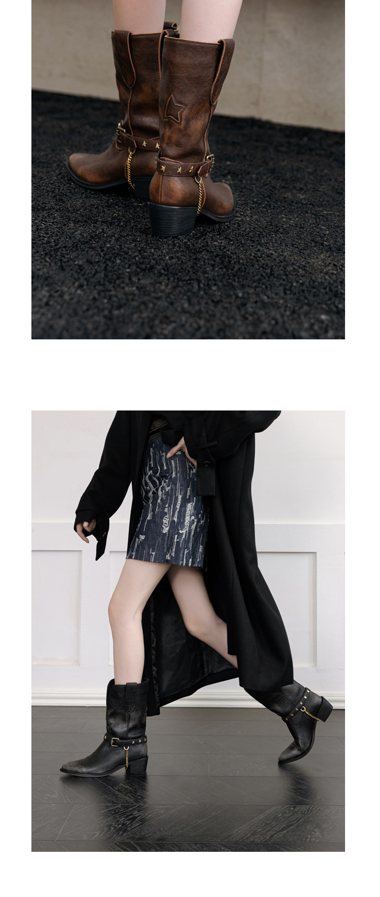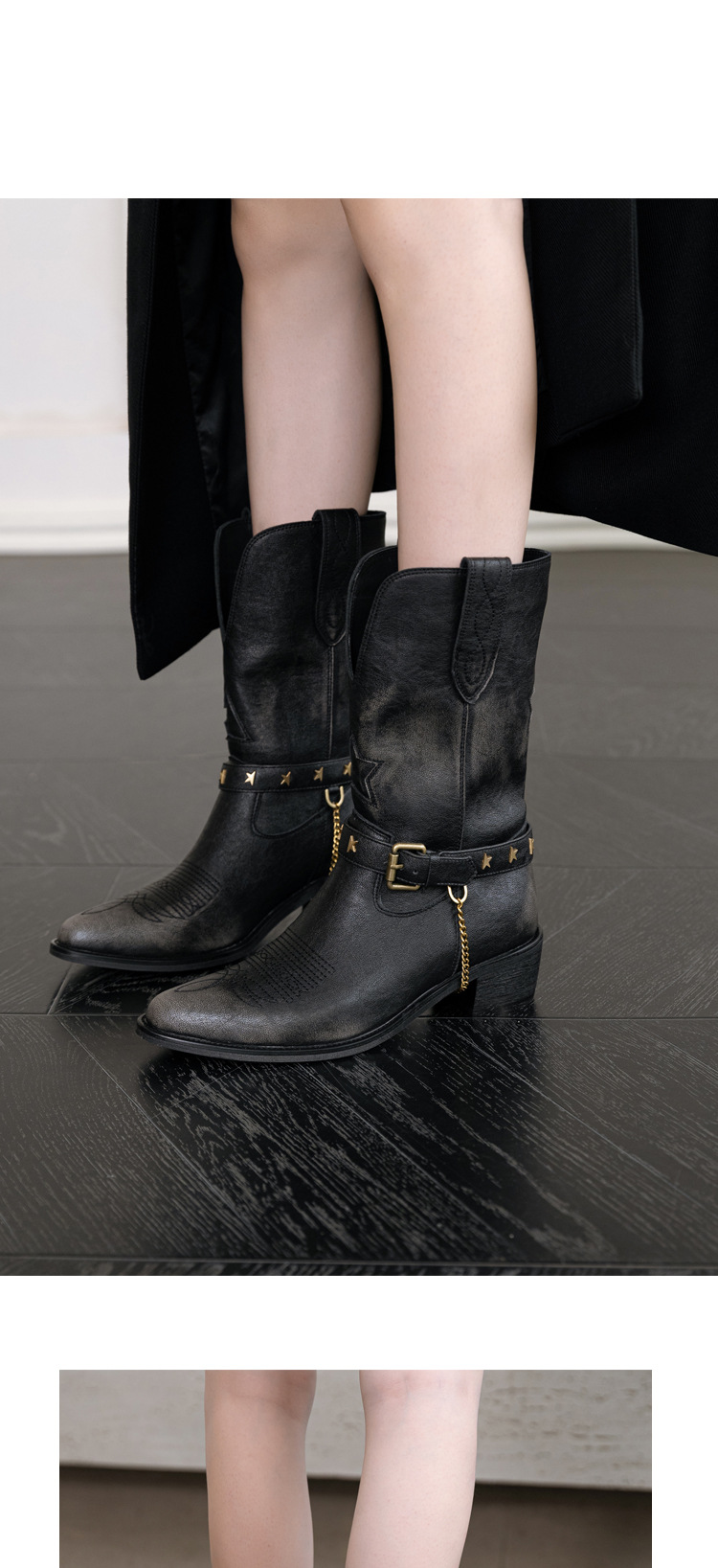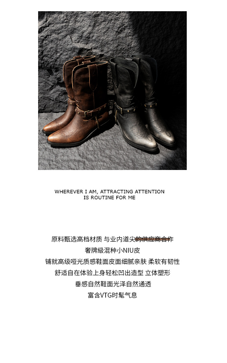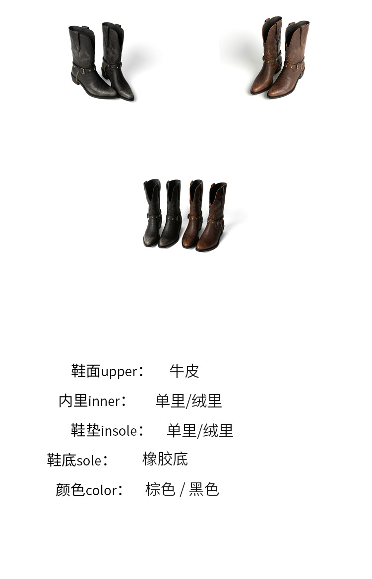 닦은 색상 고난 레트로 웨스턴 카우보이 부츠 여성 2024 새로운 V-입 포인팅 마틴 부츠 카우보이 두꺼운 힐 발목 부츠스토어 가기