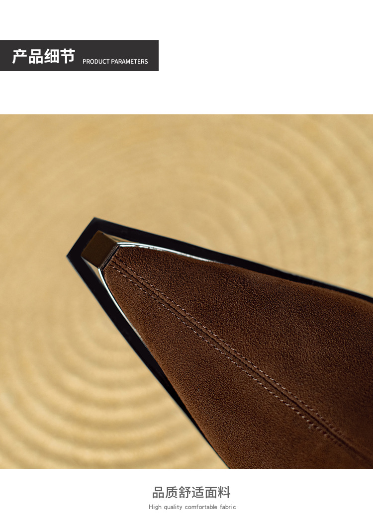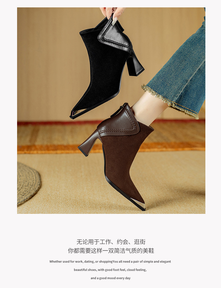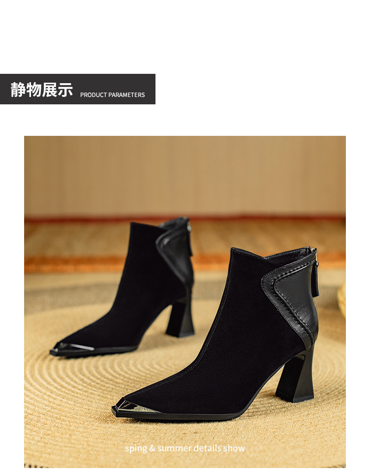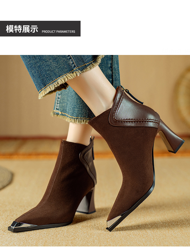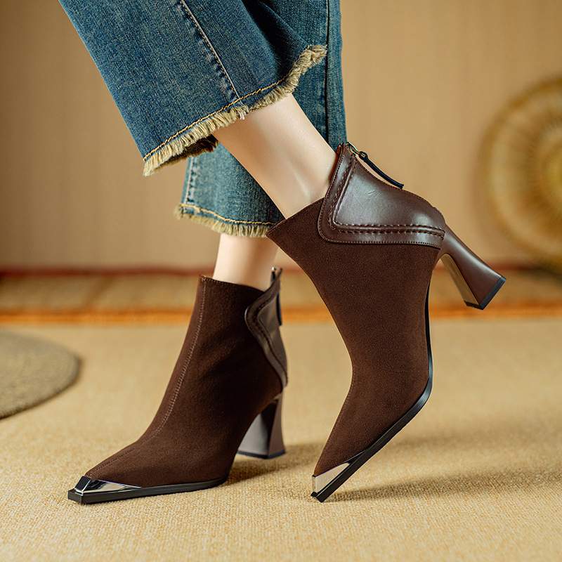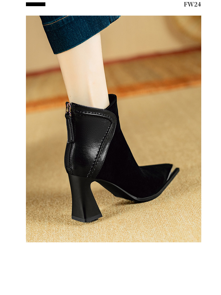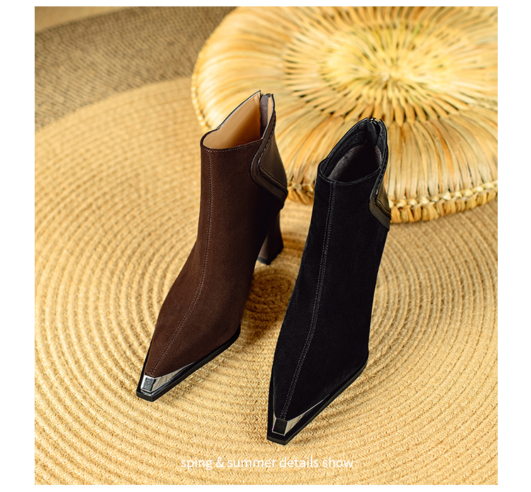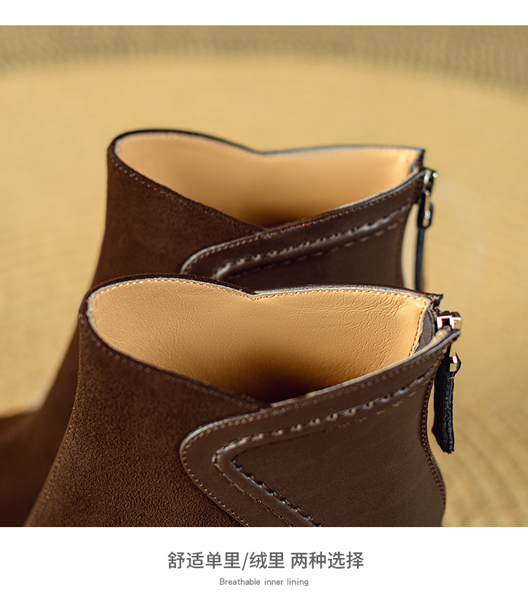 2024 프렌치 빈티지 프로스테드 정품 가죽 발목 부츠 여성용 새 겨울 포인팅 발가락 및 알몸 부츠 올매치 두꺼운 힐 하이힐 싱글 레이어 부츠