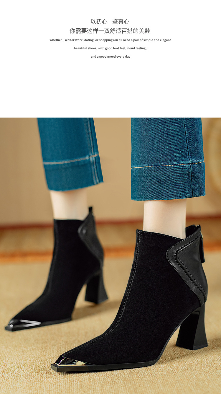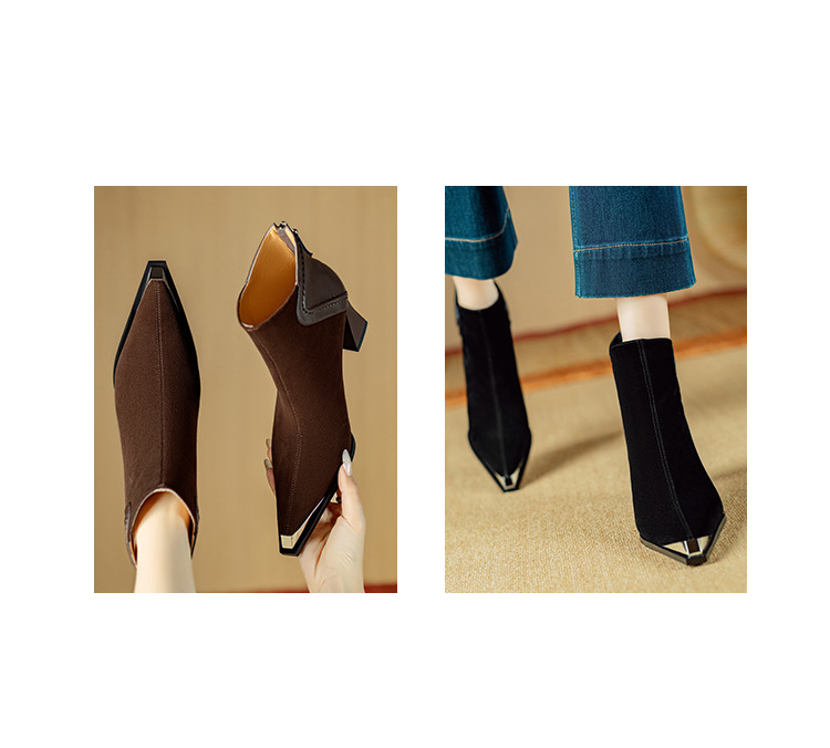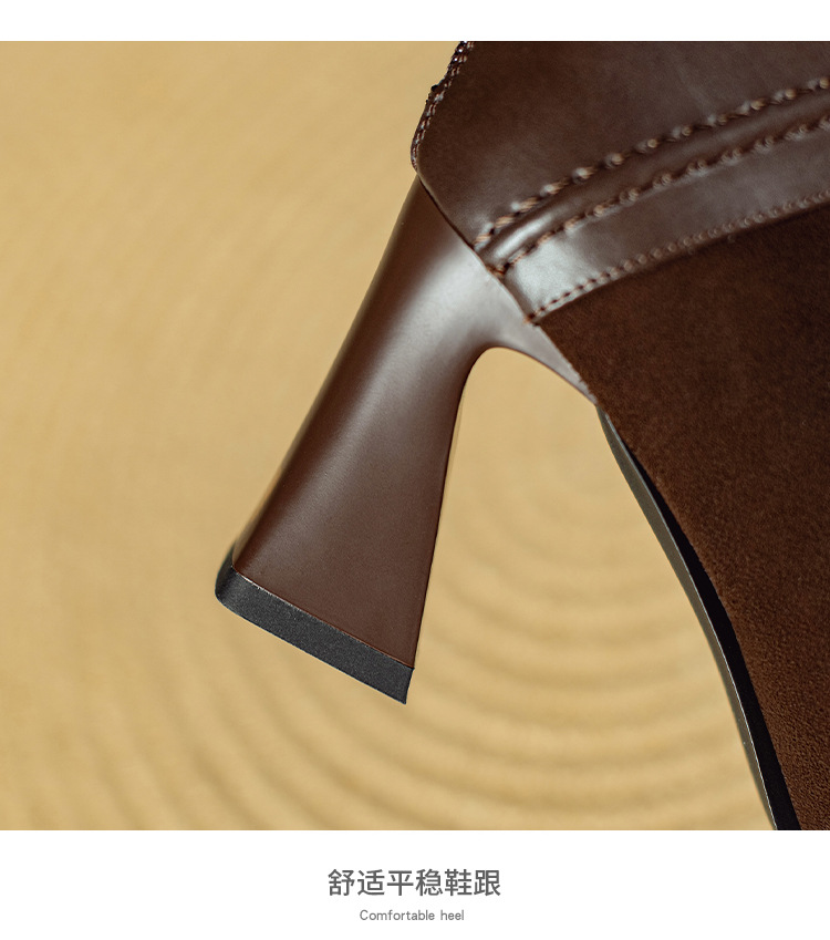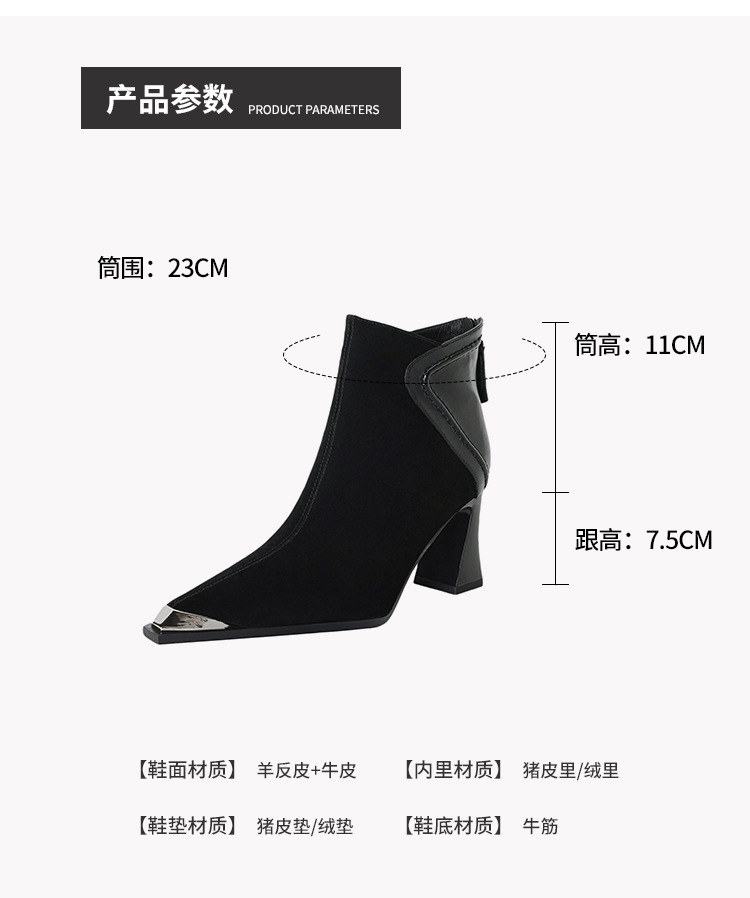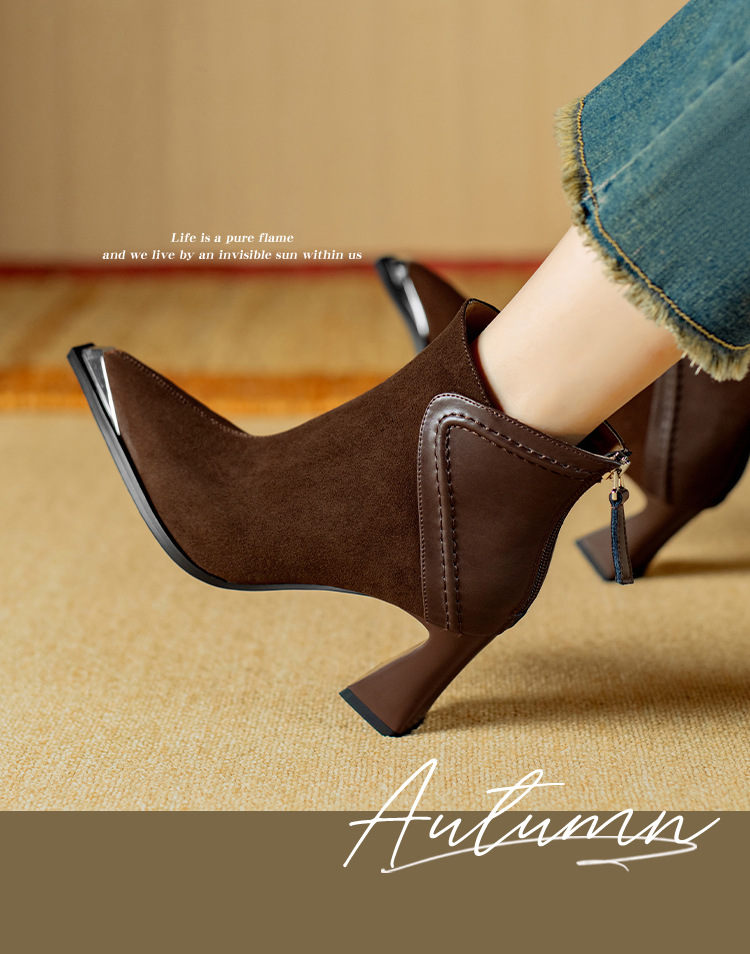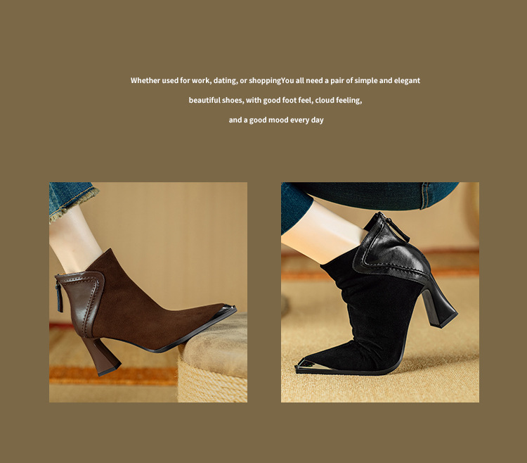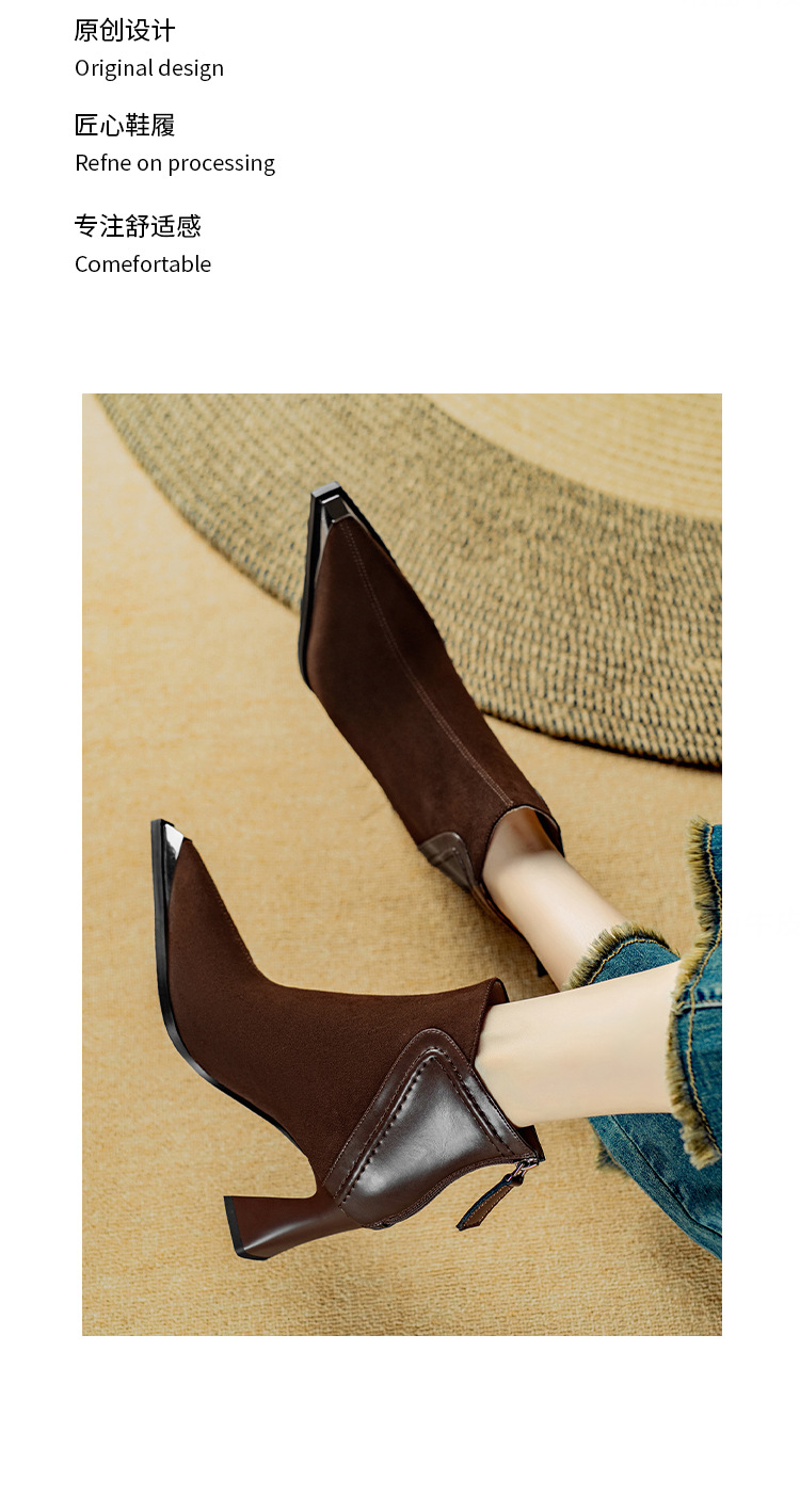 2024 프렌치 빈티지 프로스테드 정품 가죽 발목 부츠 여성용 새 겨울 포인팅 발가락 및 알몸 부츠 올매치 두꺼운 힐 하이힐 싱글 레이어 부츠
