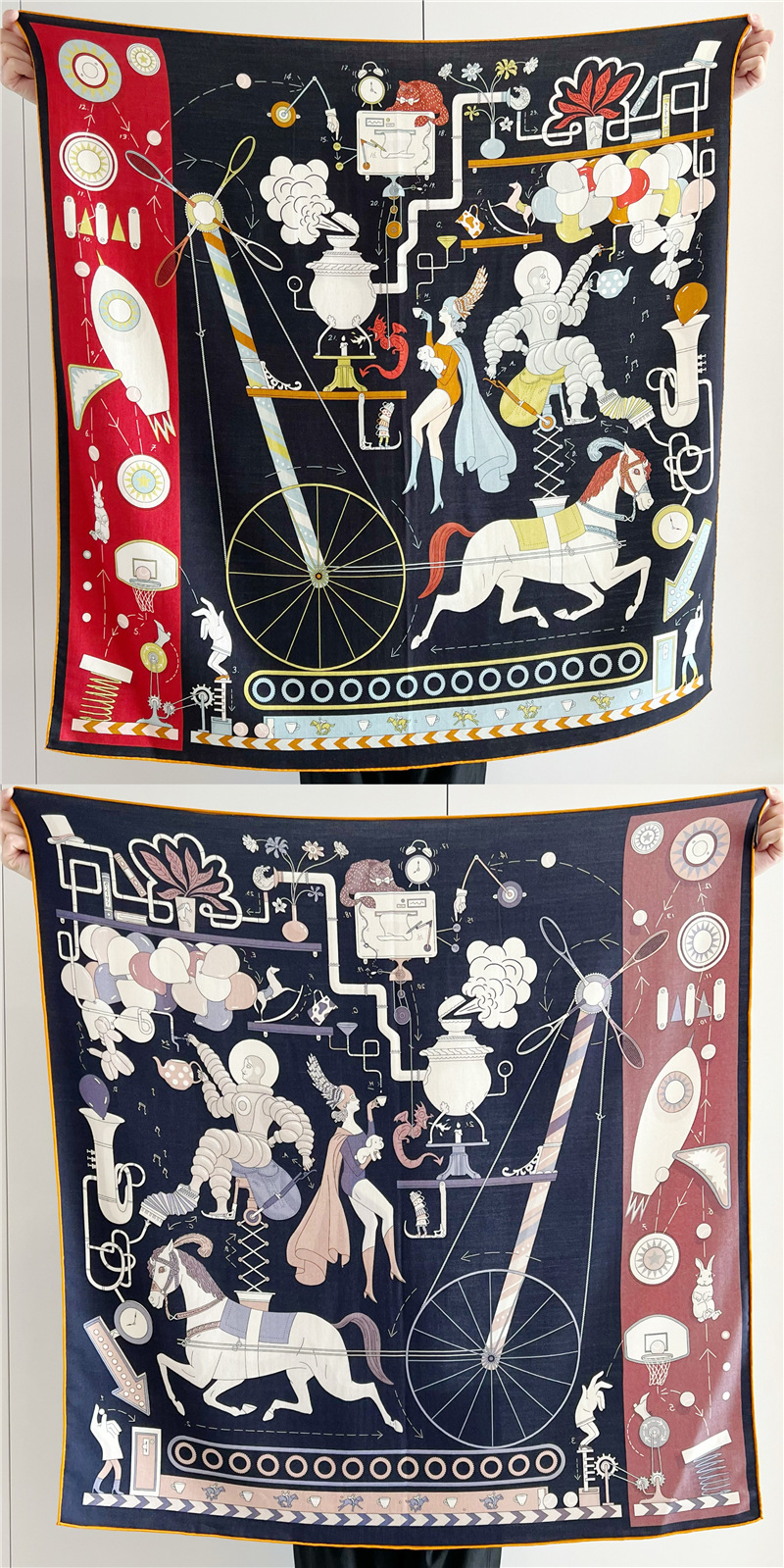가벼운 럭셔리 2024 올 매치 실크 울 스퀘어 양면 특수 컬러 수제 커드 세련된 숄 실크 울 스카프