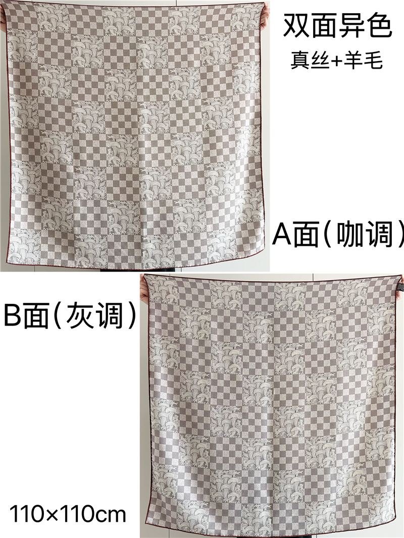 가벼운 럭셔리 2024 올 매치 실크 울 스퀘어 양면 특수 컬러 수제 커드 세련된 숄 실크 울 스카프스토어 가기