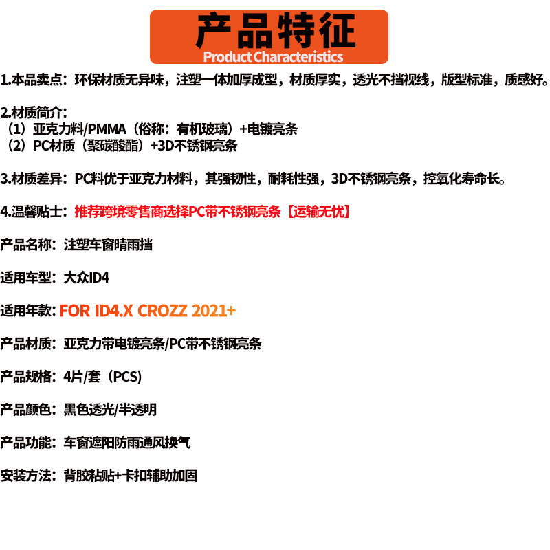 폭스 바겐 ID4.X 자동차 창 비 방패 비 방패 ID4.X CROZZ 2021 윈도우 바이저에 적합스토어 가기