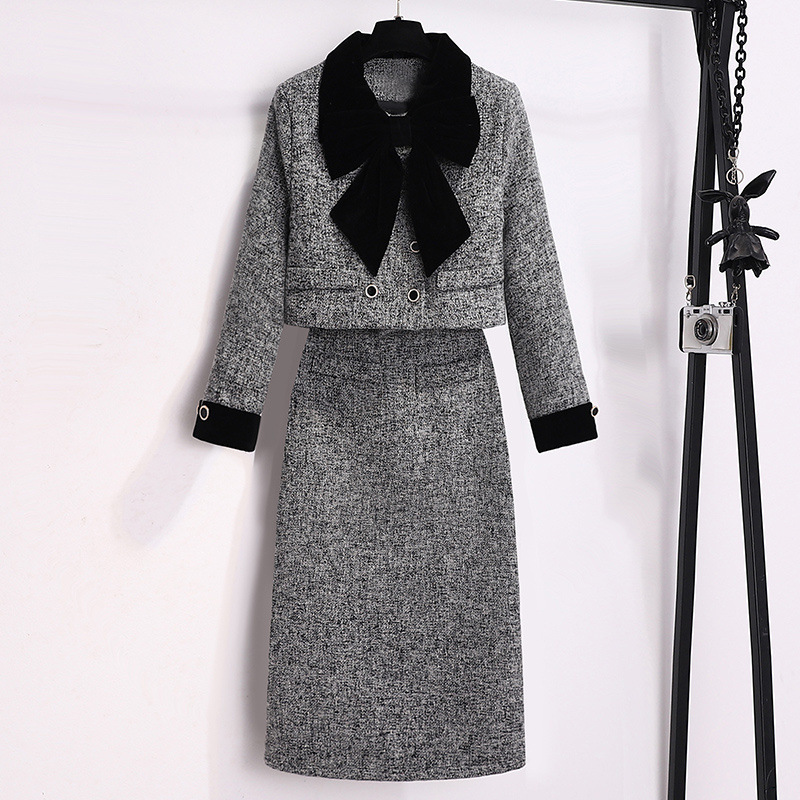 2024 겨울 샤넬 스타일 원피스 여성 기질 사교계 퀼트 두꺼운 재킷 스커트 투피스 세트