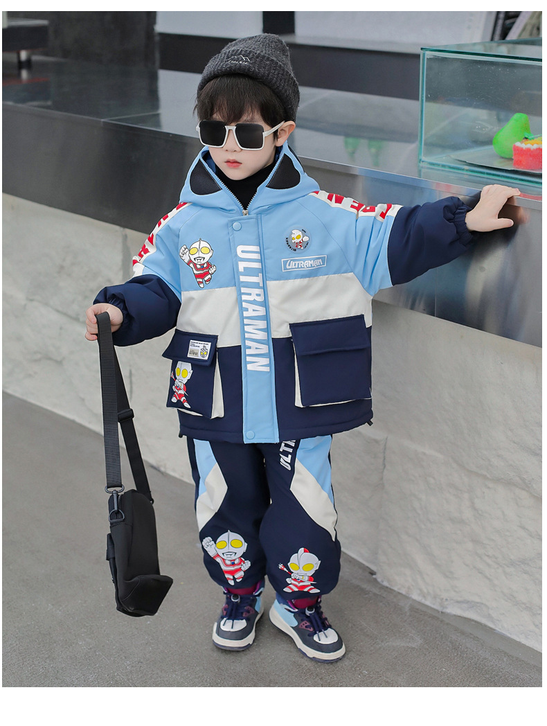 남학생 겨울 의류와 벨벳 세트 2024 년 새로운 Altman 두꺼운 옷 어린이 가을과 겨울 소년면 패딩 재킷 코트스토어 가기