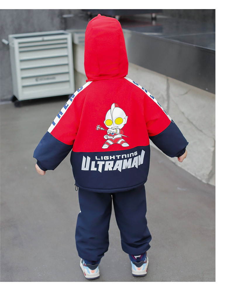 남학생 겨울 의류와 벨벳 세트 2024 년 새로운 Altman 두꺼운 옷 어린이 가을과 겨울 소년면 패딩 재킷 코트