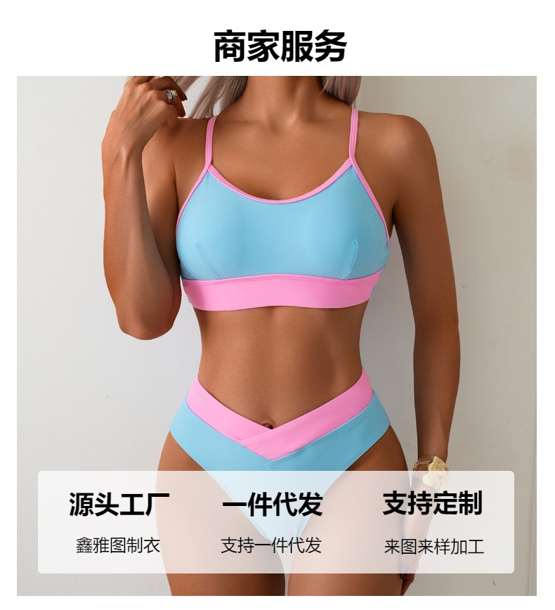 Xinyatu 2025 유럽과 미국의 새로운 섹시한 단색 스티칭 대조 컬러 대외 무역 아마존 분할 비키니 수영복 여성스토어 가기