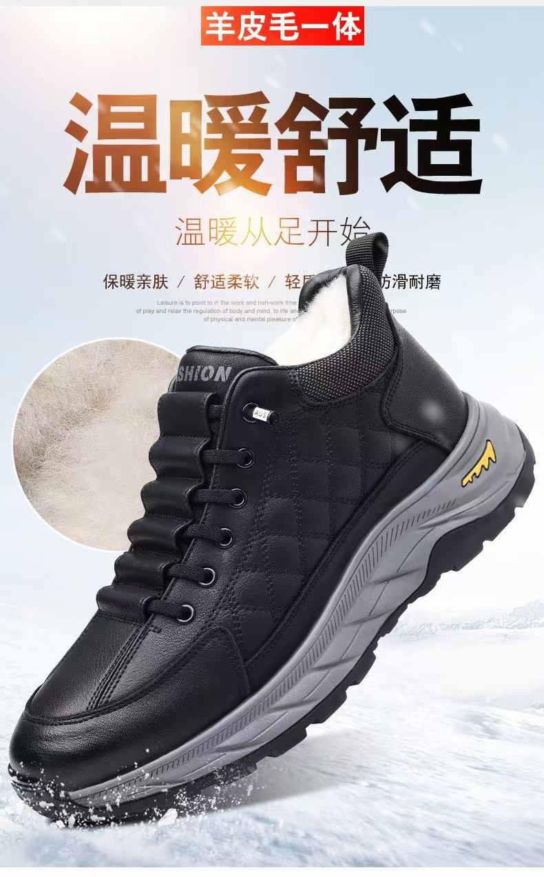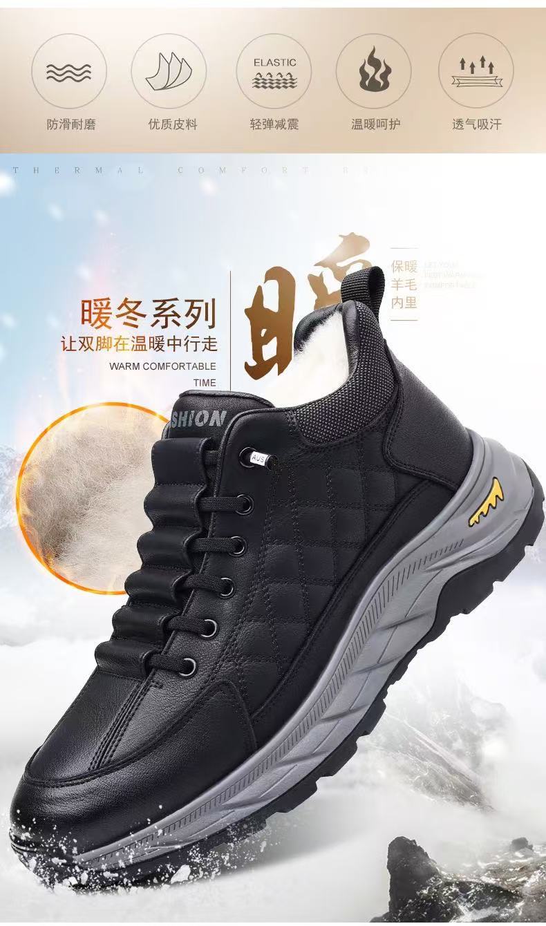 두꺼운 밑단면 패딩 신발 남자 2024 년 겨울 새로운 양모 올 매치 캐주얼 신발 남자 기모 두껍게 한 남성 신발 스노우 부츠스토어 가기