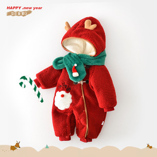 阿宝囡囡2024宝宝秋冬新年款加绒加厚爬服 婴幼儿连体衣送围巾