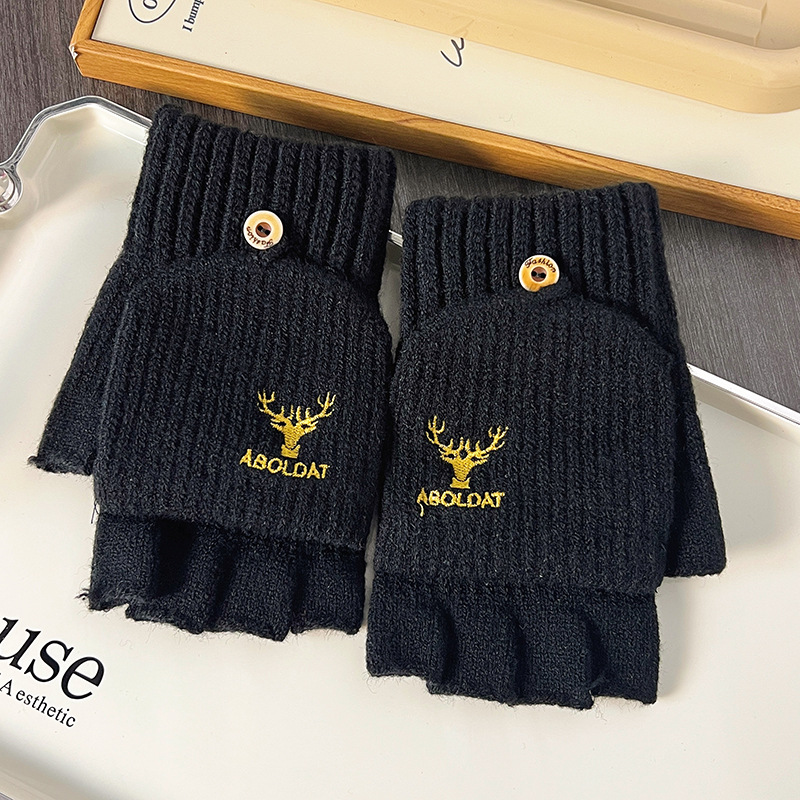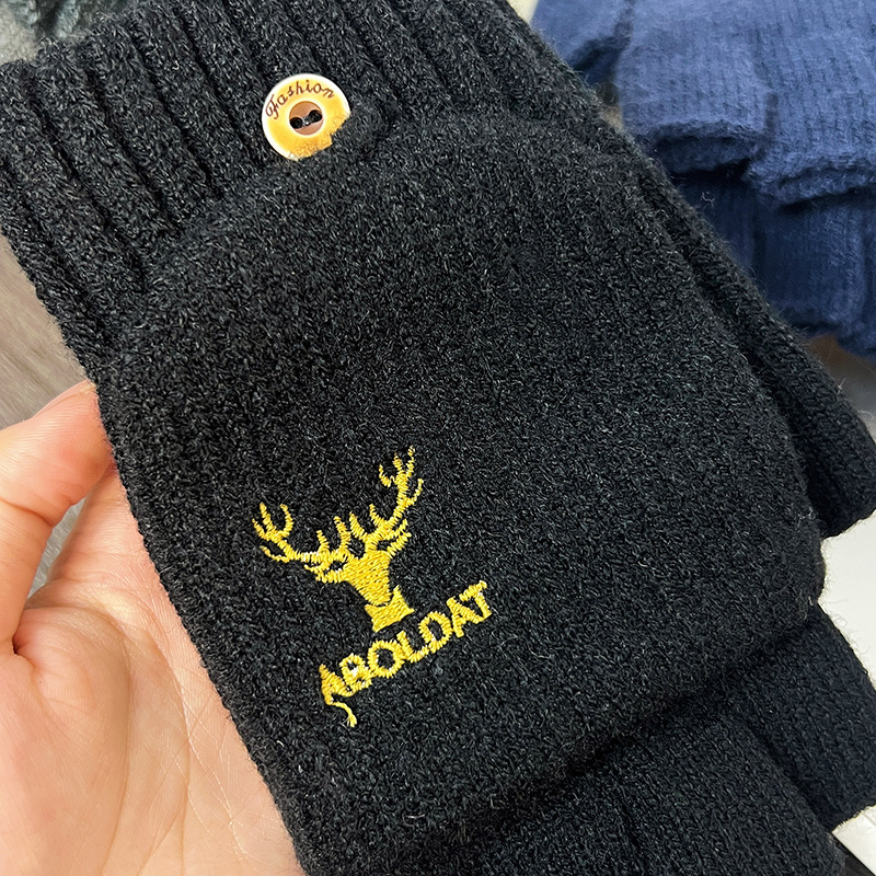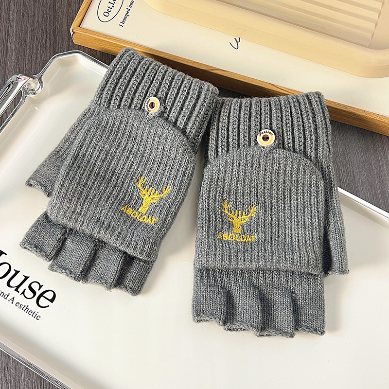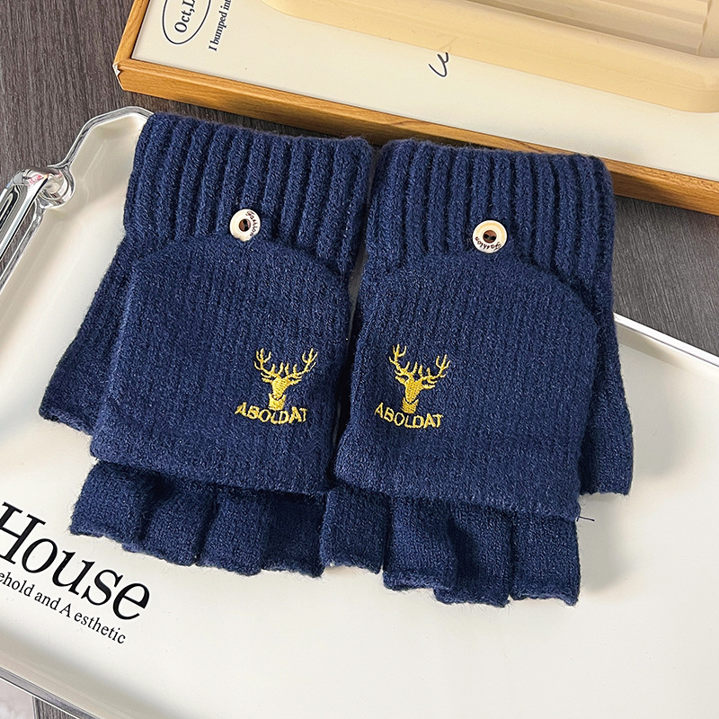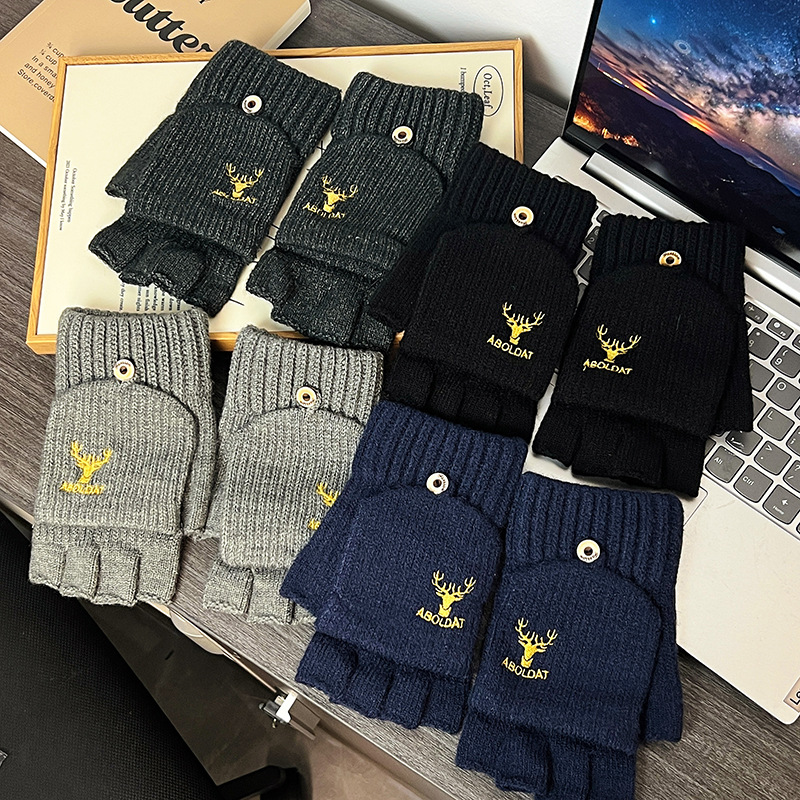 플립 장갑 겨울 기모 남자 잘 생긴 학생 한국 승마 방한 따뜻한 글쓰기 니트 반 손가락 장갑스토어 가기