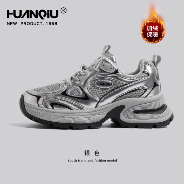 유니버설 두꺼운 밑창 실버 플러스 벨벳 여성용 아빠 신발 2025 신상 가을 겨울 키높이 다용도 인기 겨울 운동화스토어 가기