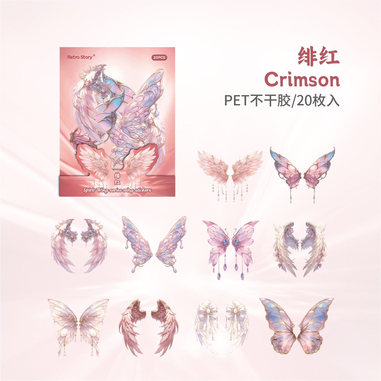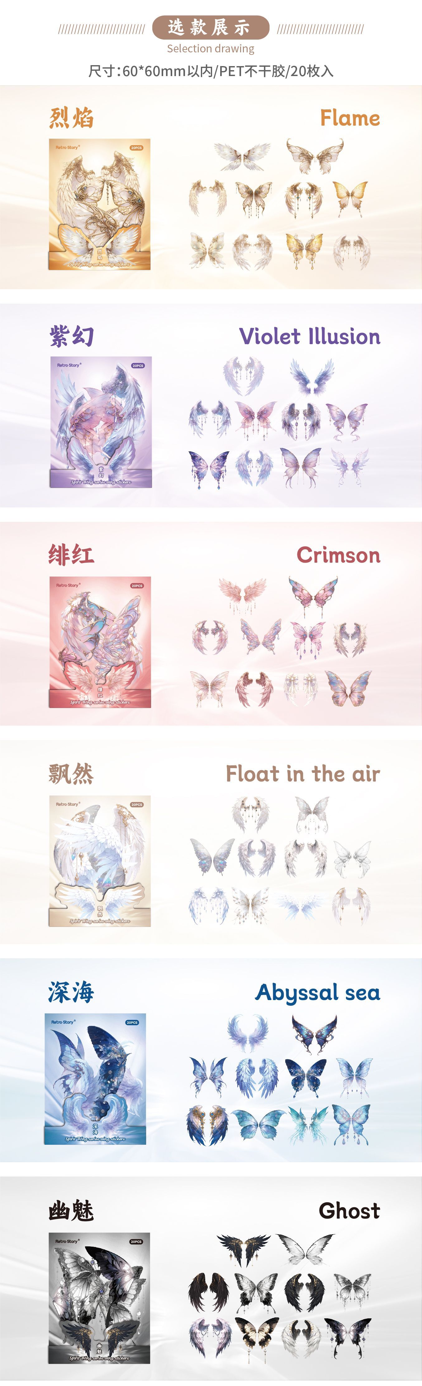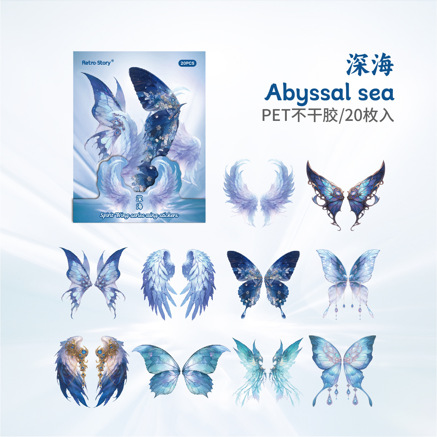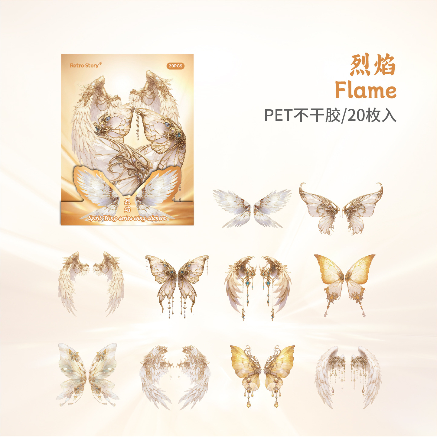 레트로 스토리 쉘 라이트 날개 테마 스티커 팩 스피릿 날개 시리즈 20 PET 소재 기본 스티커