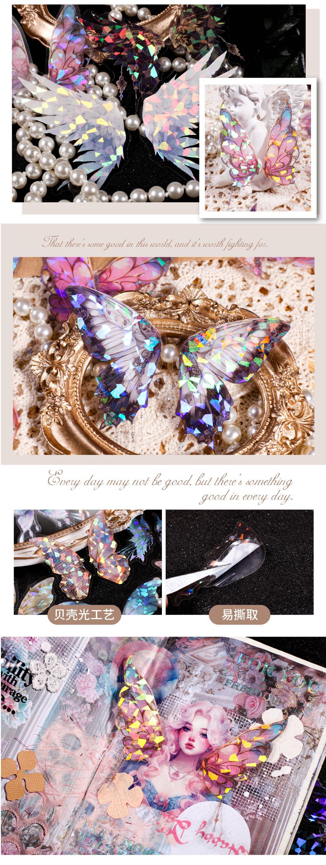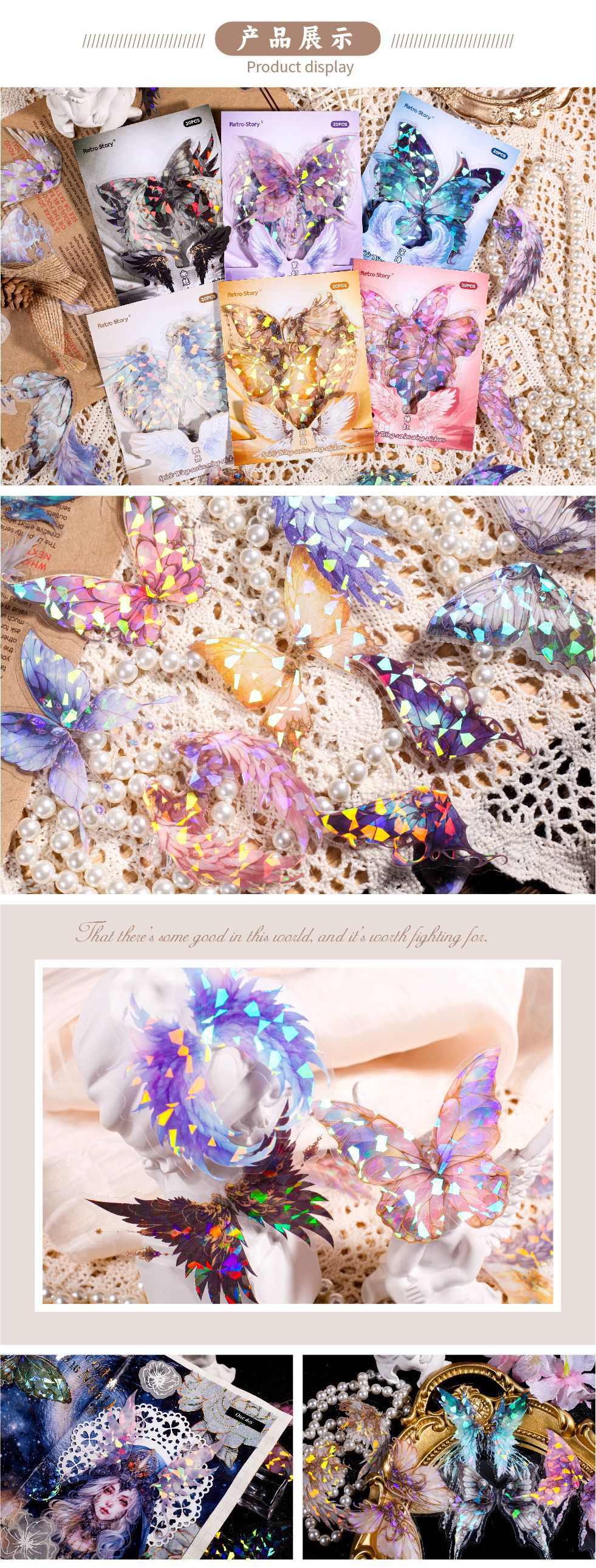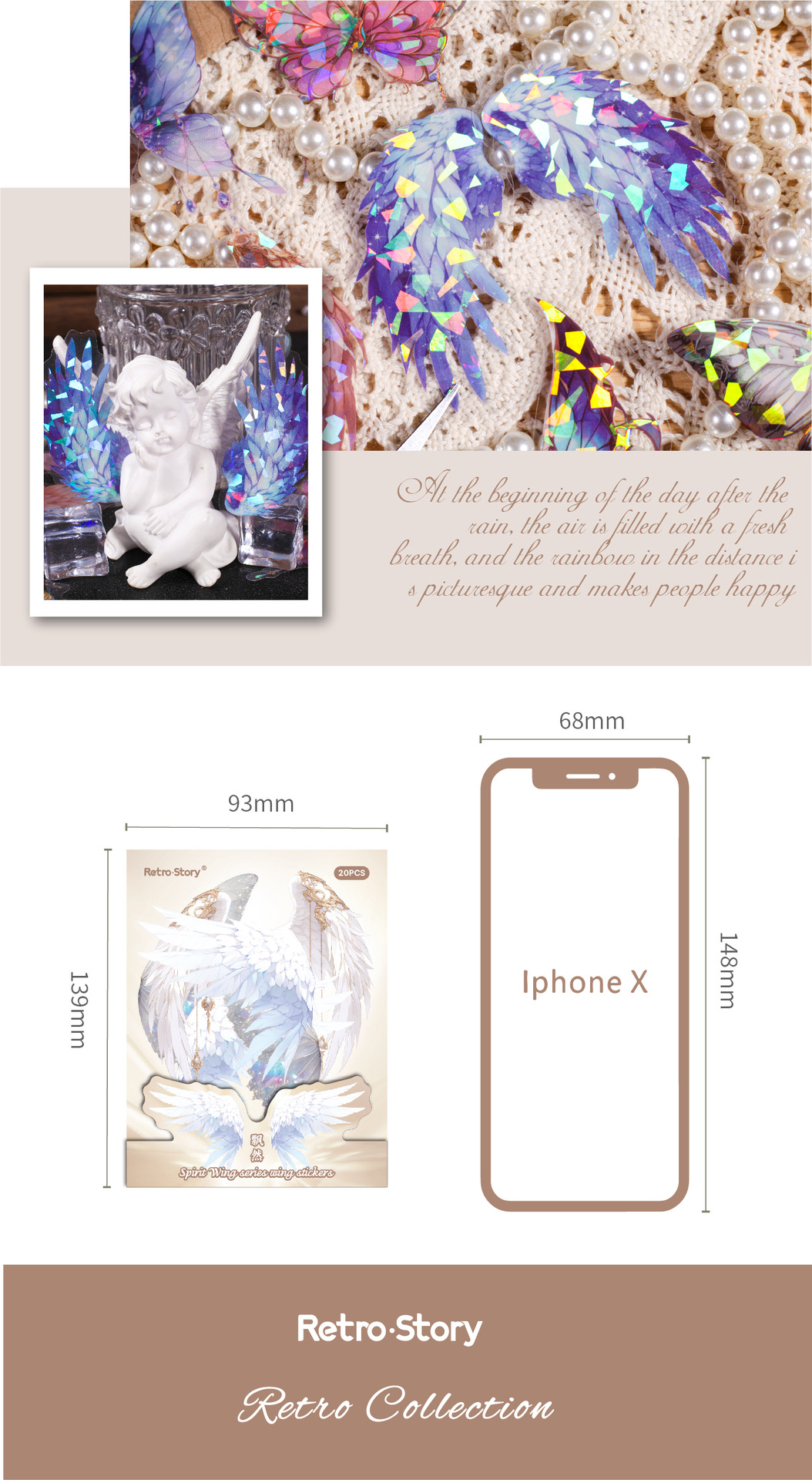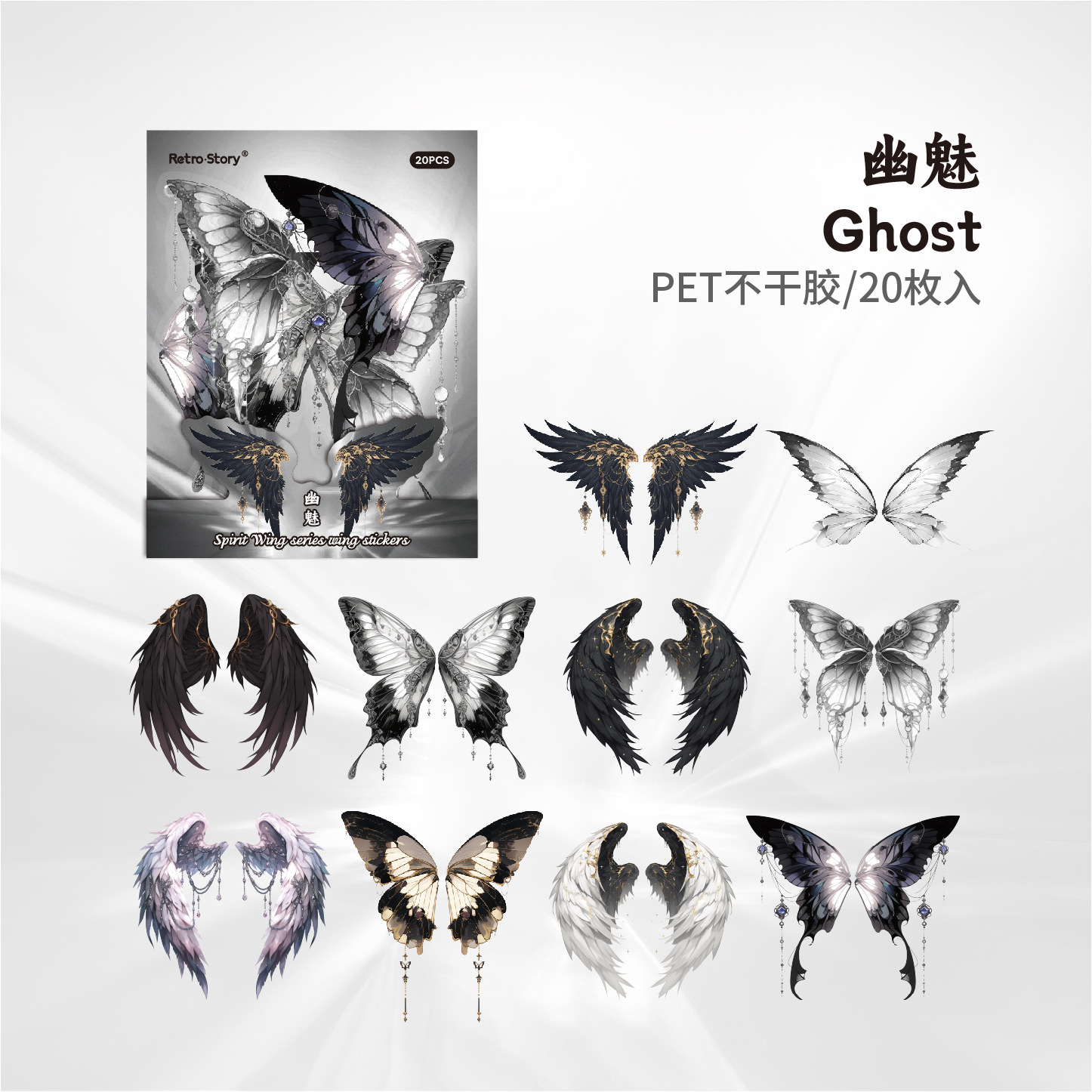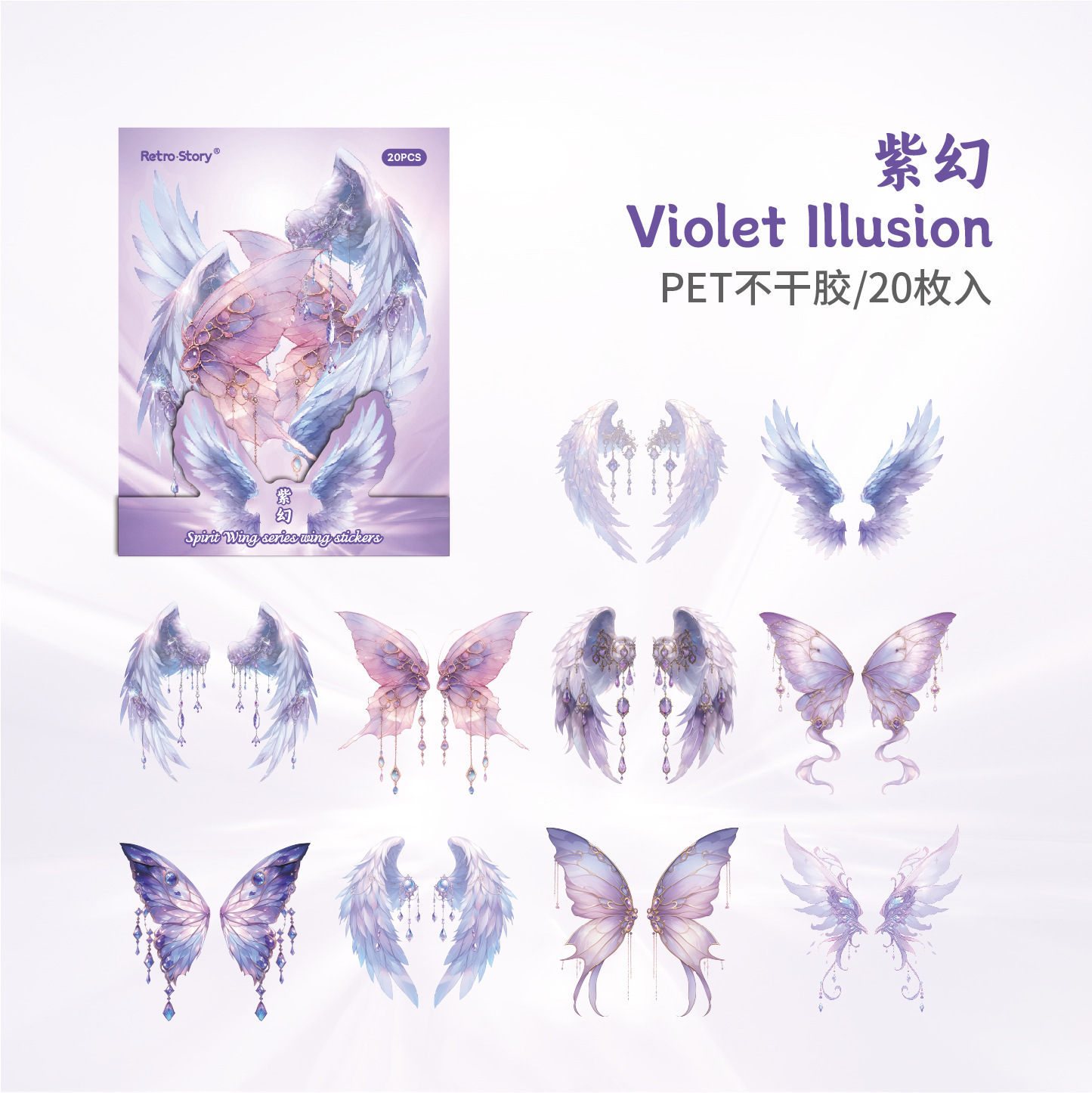 레트로 스토리 쉘 라이트 날개 테마 스티커 팩 스피릿 날개 시리즈 20 PET 소재 기본 스티커