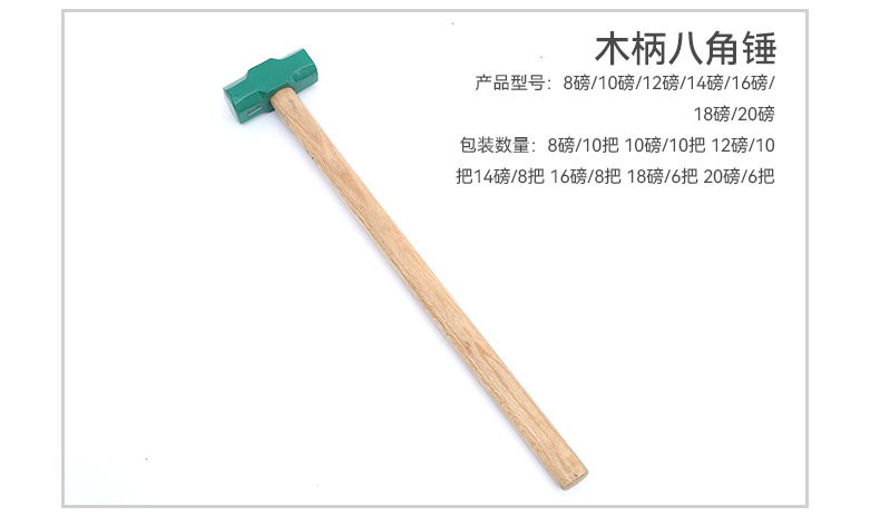 • 나무 손잡이가 달린 팔각형 망치 20파운드 [6개/개]
